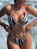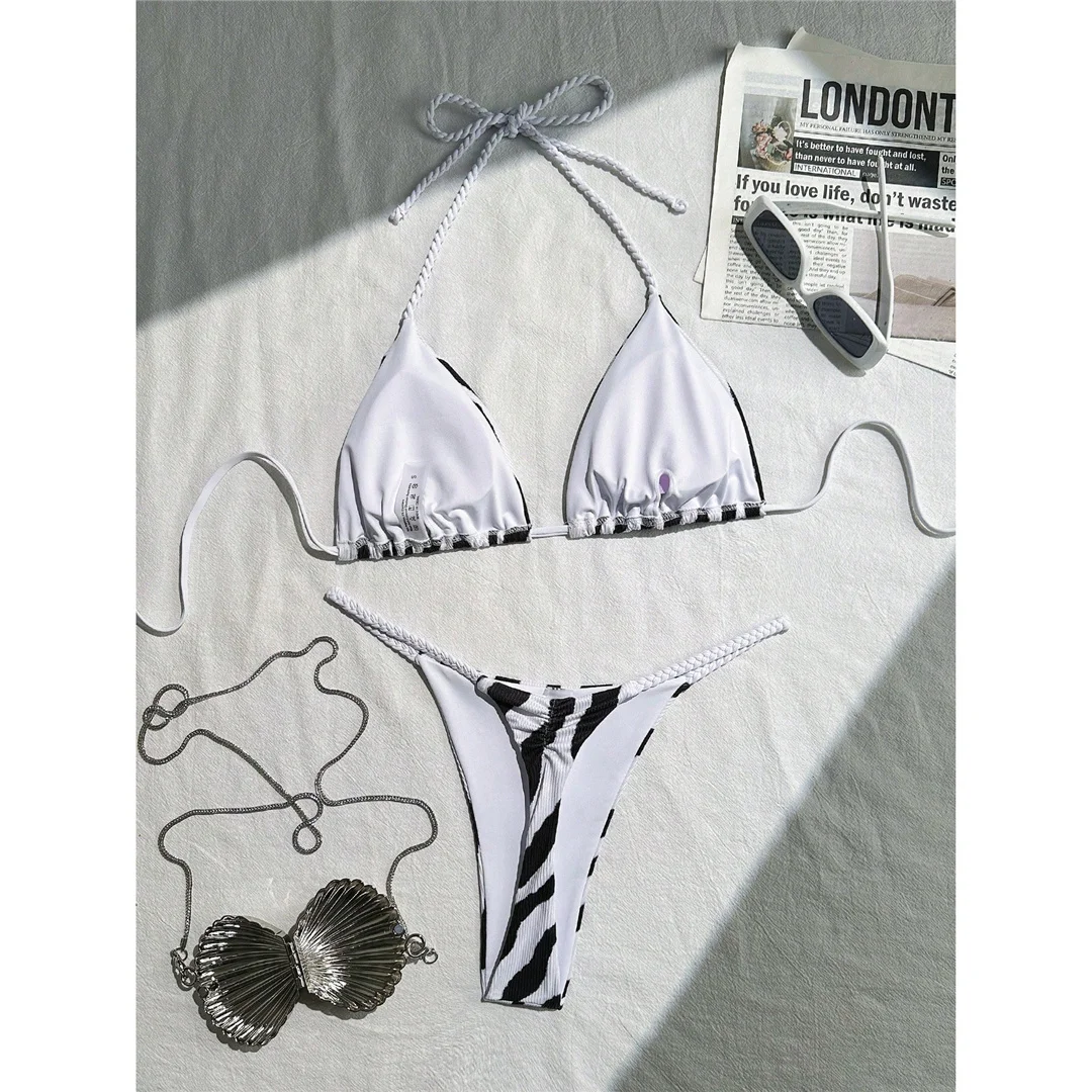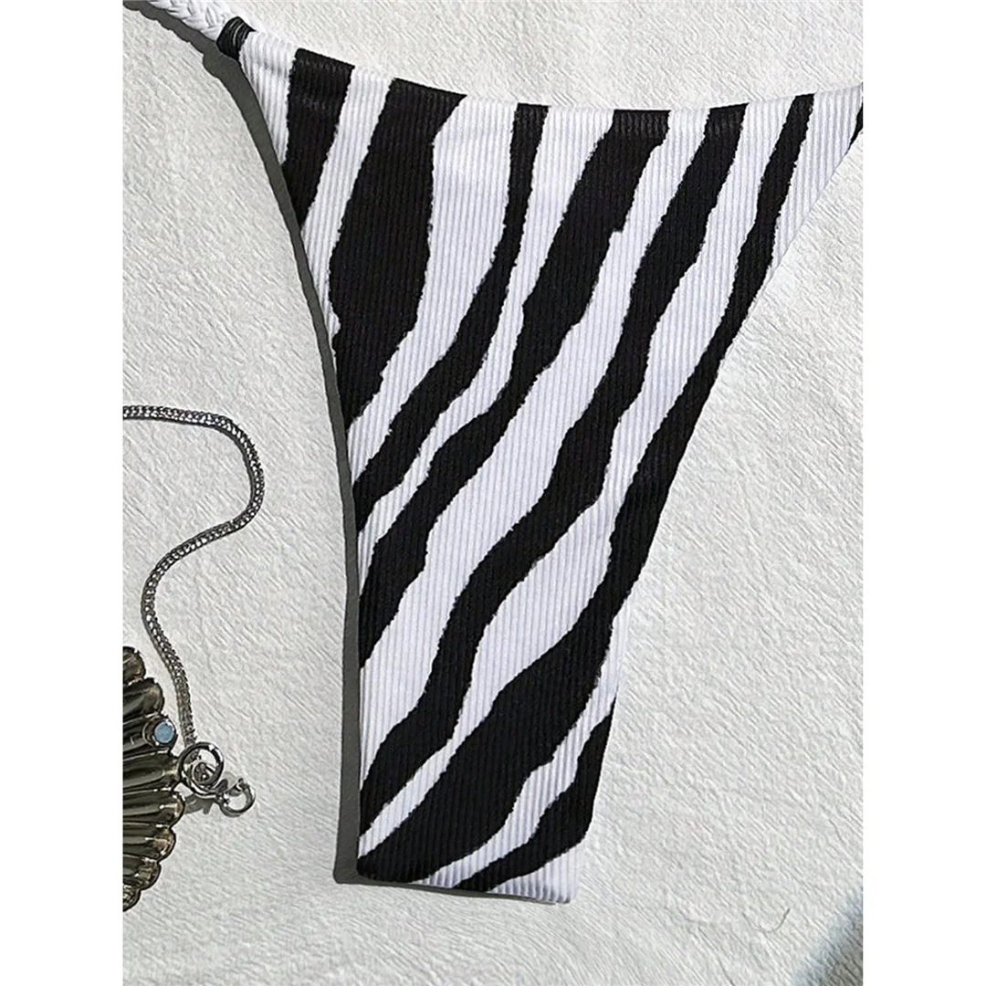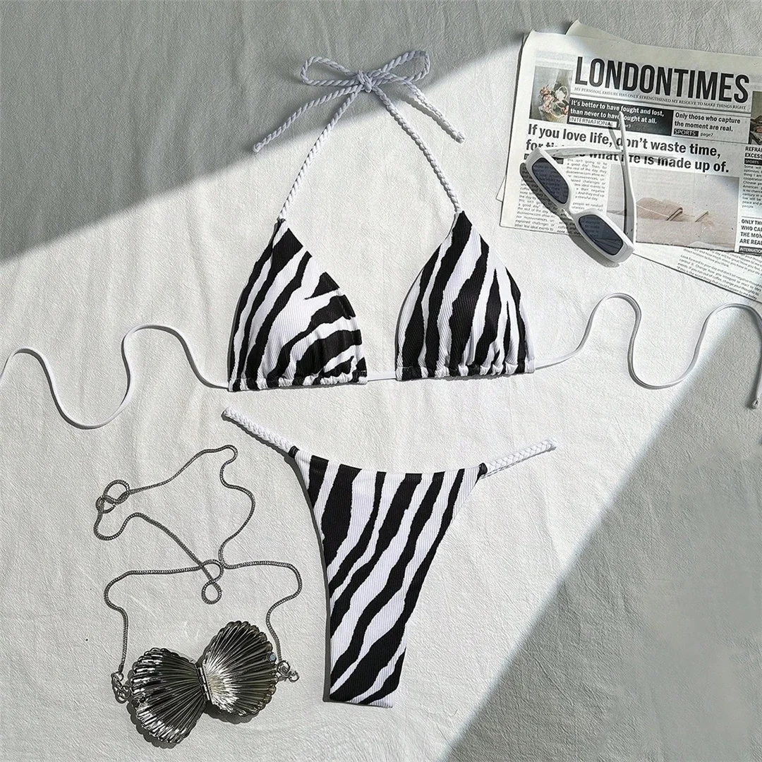 XS – L Zebra Halter Mini Thong Bikini Women Swimwear Female Swimsuit Two-pieces Bikini set Padded Bather Bathing Suit Swim V6759