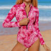 XS – XL Long Sleeve Flowers Printed Zipper Women Swimwear One Piece Swimsuit Female High Leg Cut Bather Bathing Suit Swim V7195
