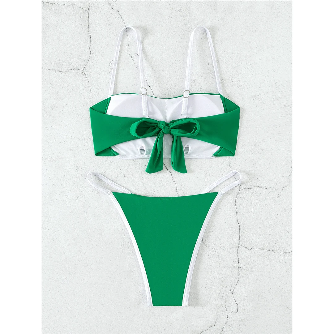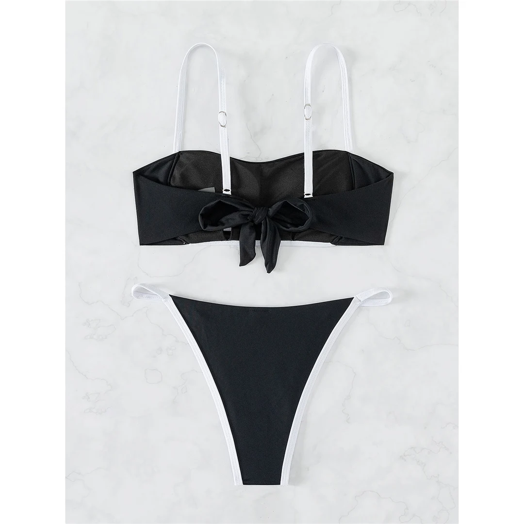XS – XL Sexy Knotted Splicing Padded Bikini Female Swimsuit Women Swimwear Two-pieces Bikini set Bather Bathing Suit Swim V4993