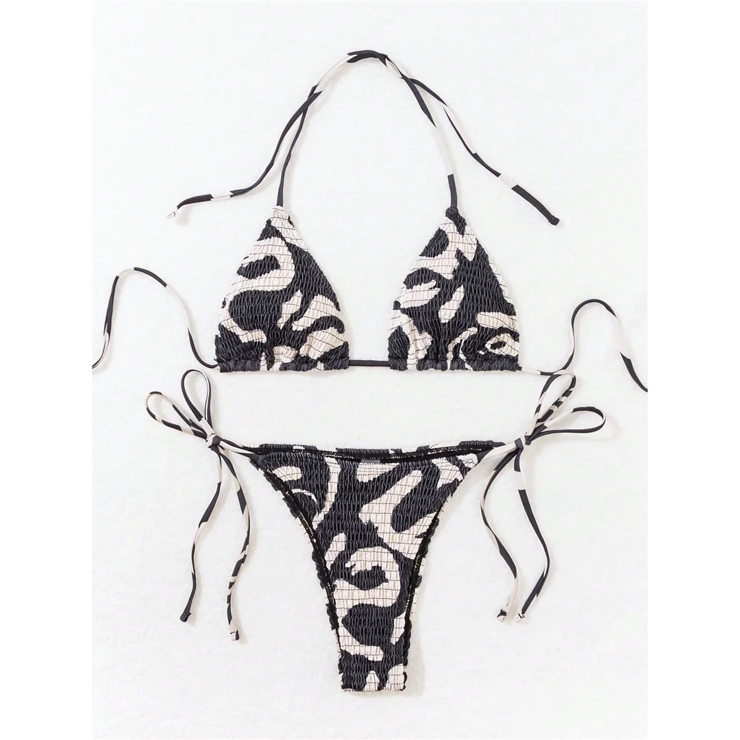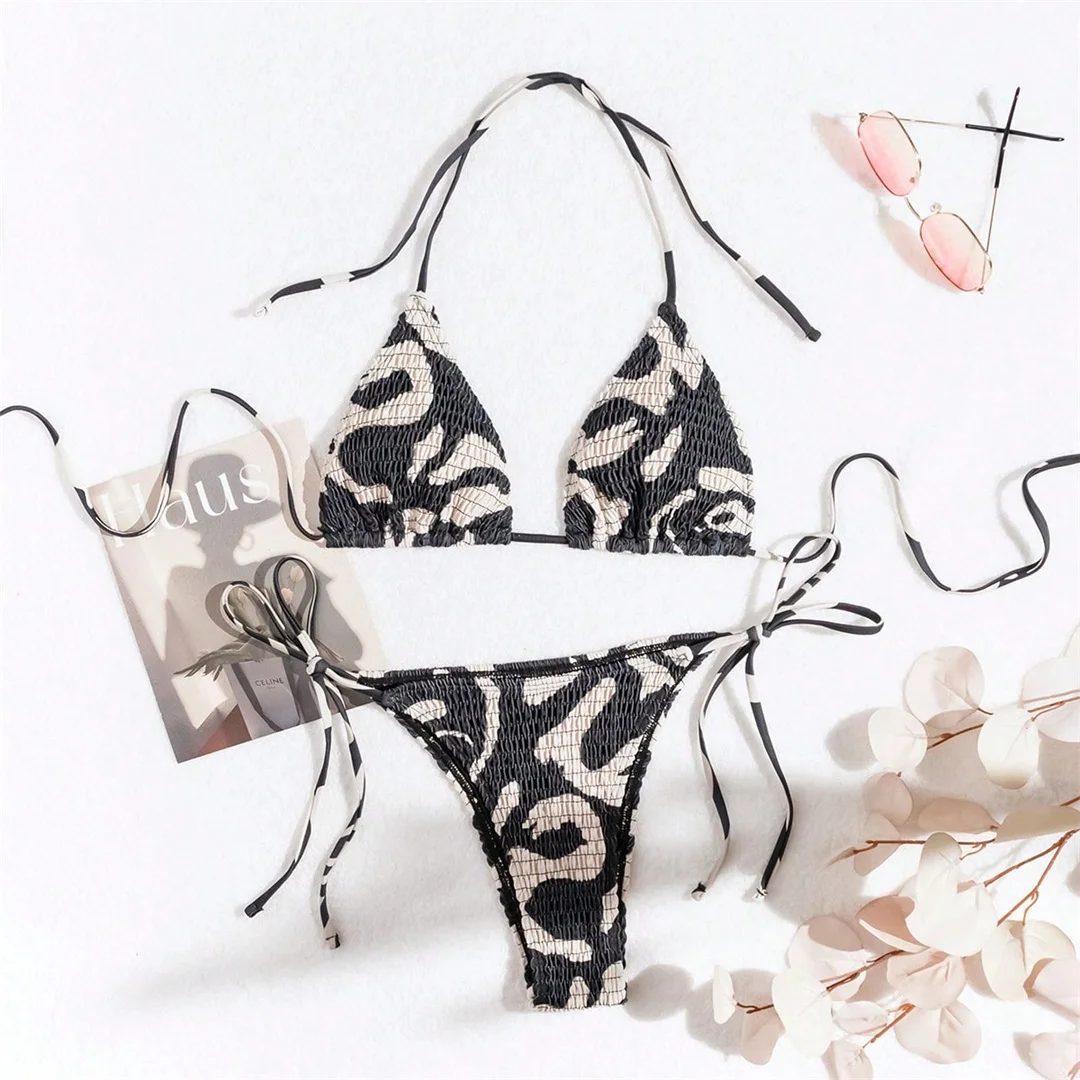 XS – XL Sexy Wrinkled Crinkled Halter Bikini Female Swimsuit Women Swimwear Two-pieces Bikini set Bather Bathing Suit Swim V6786