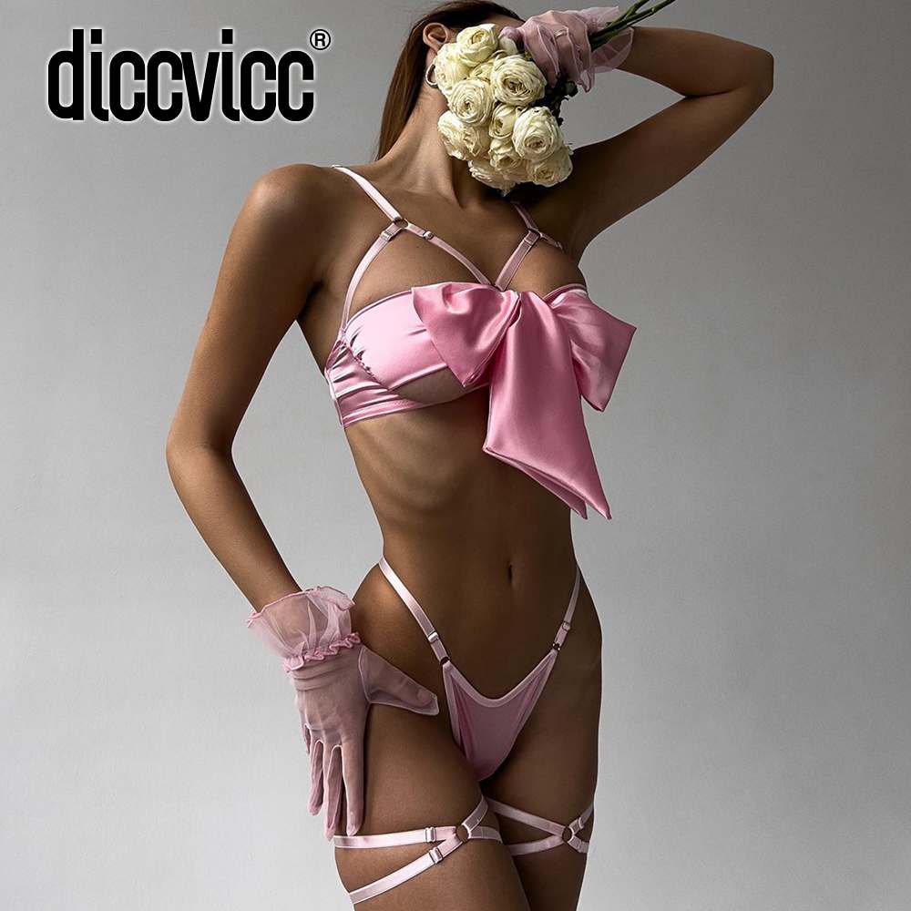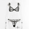 Yimunancy 2-Piece heart embrodiery lace intimates women transparent bow bra + panty lingerie set sexy underwear set