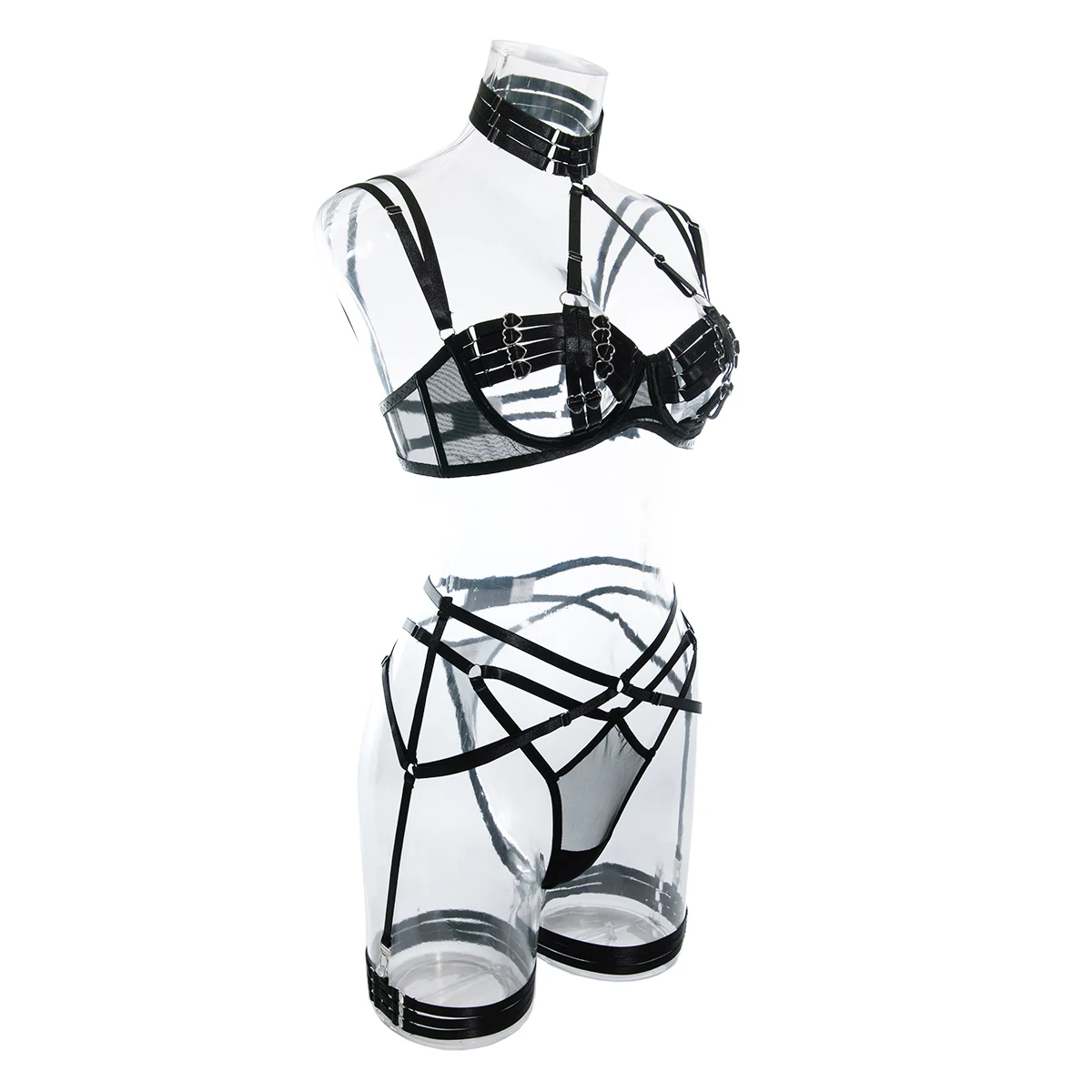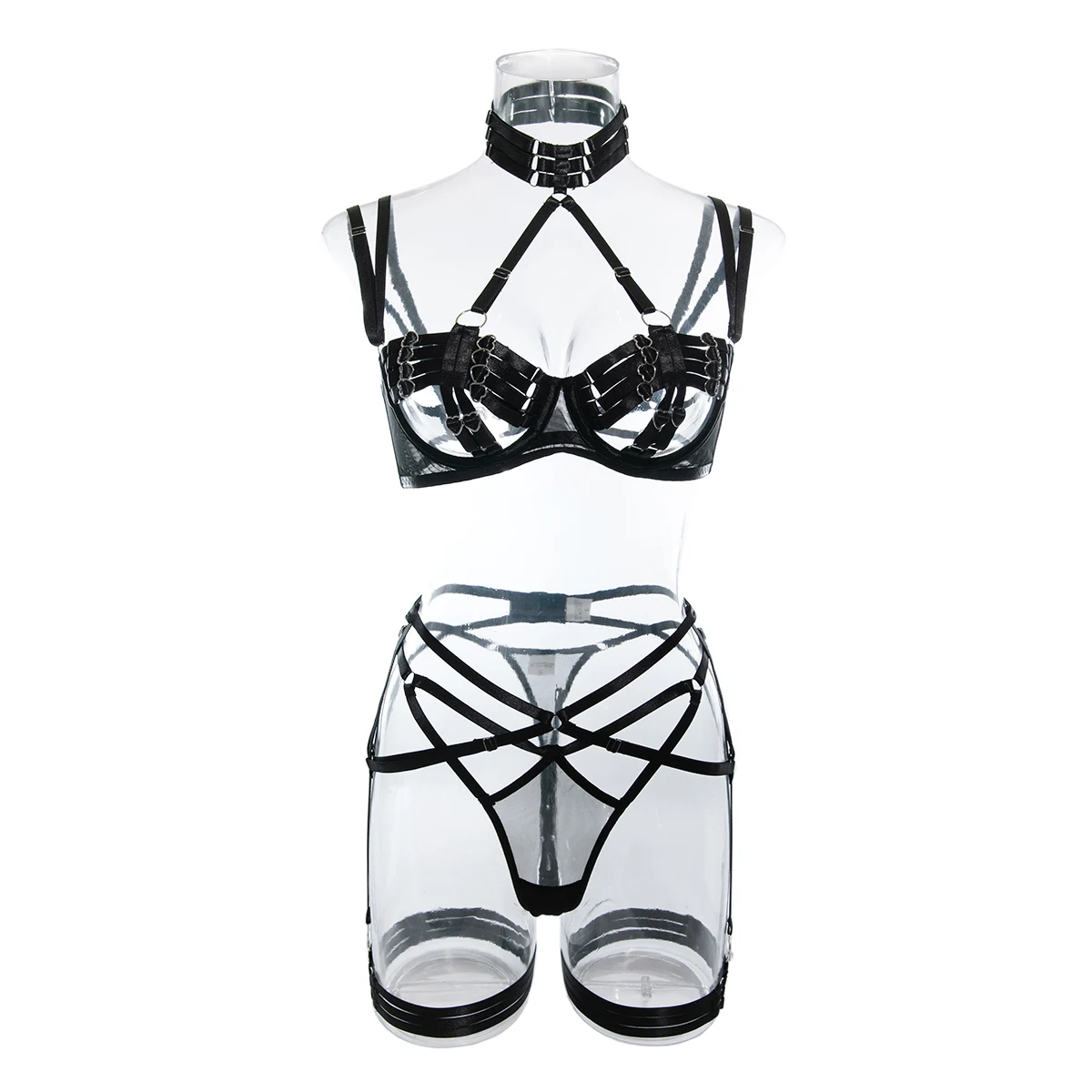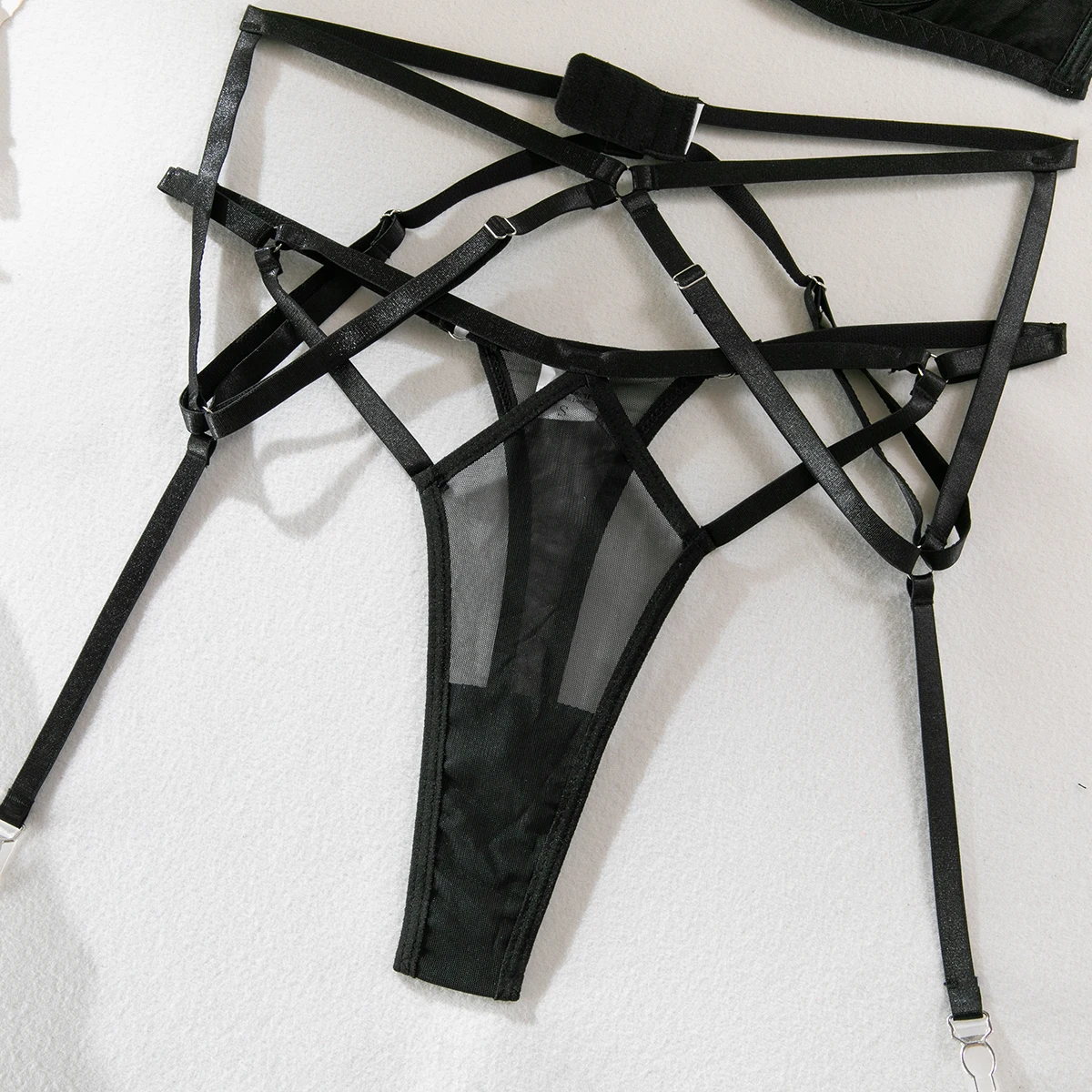 Yimunancy Bandage Lingerie Set Women Black Sensual Halter Bra + Brief Underwear Sexy Erotic Set