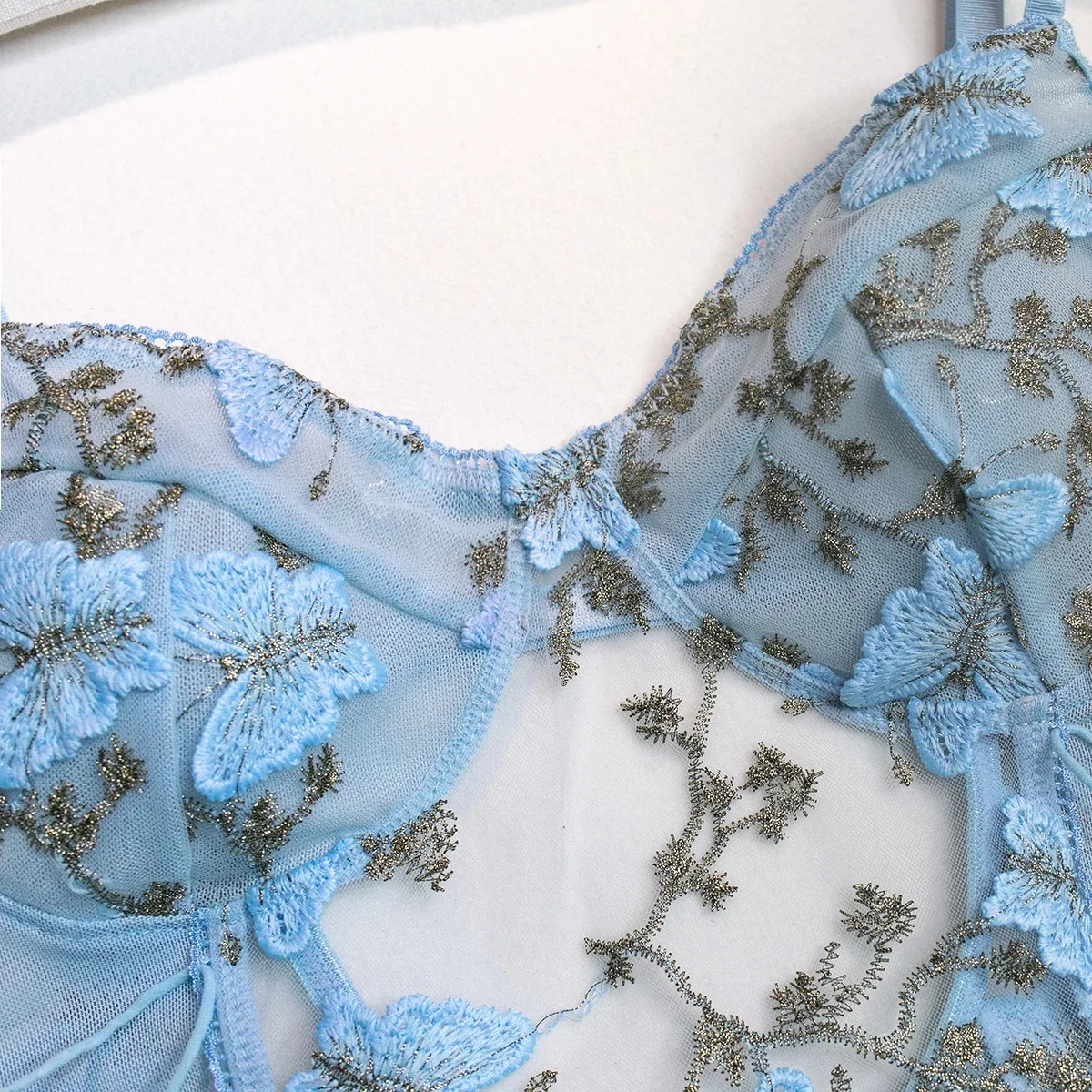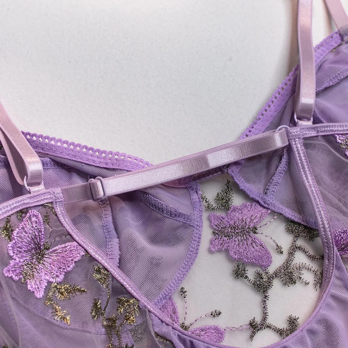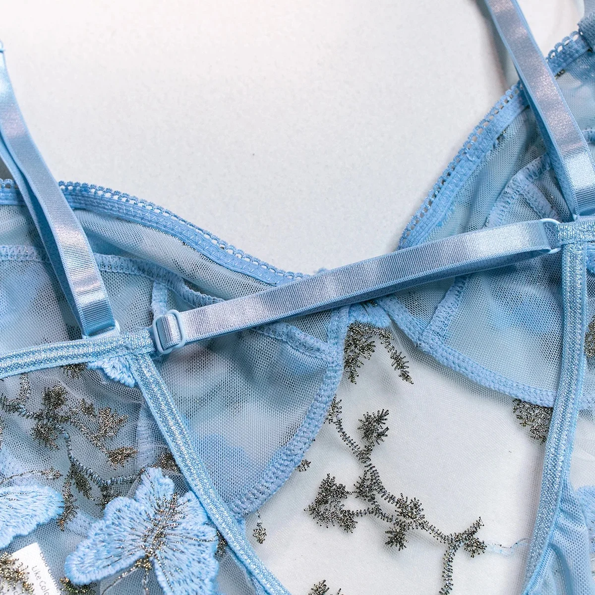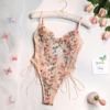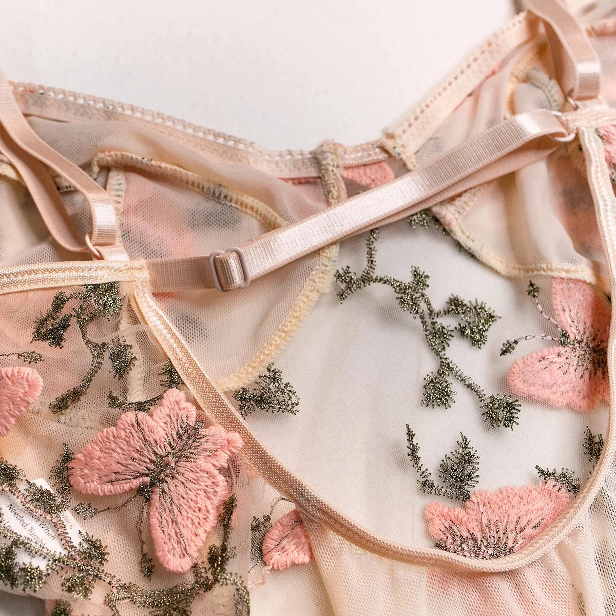 Yimunancy Boho Butterfly Embroidery Mesh Bodysuit Women Transparent Lace Up Sexy Bodysuit Body Femme