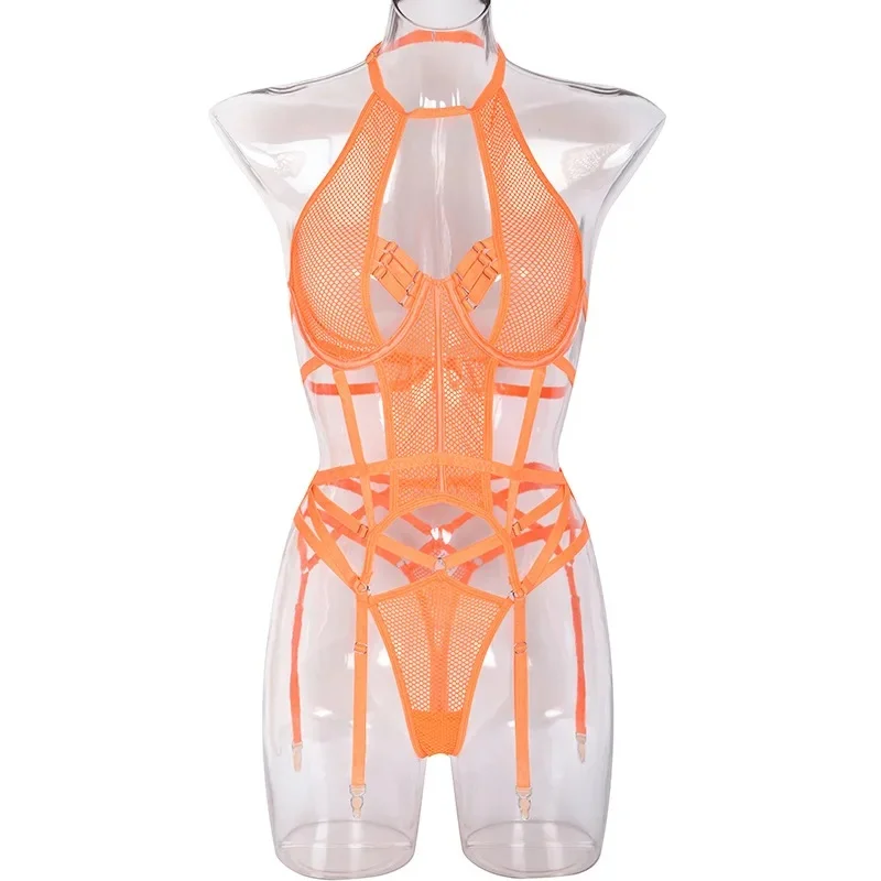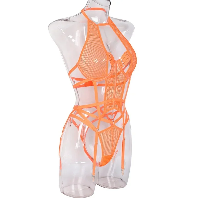 Yimunancy Cut Out Lingerie Set Women Backless 2-Piece Mesh Sensual Transparent Erotic Set