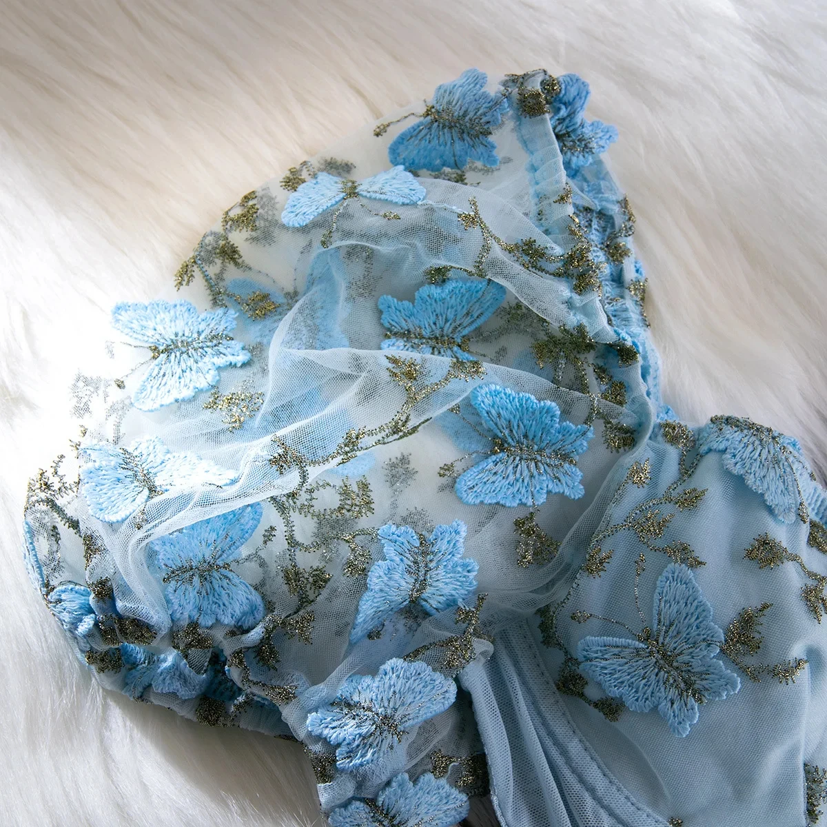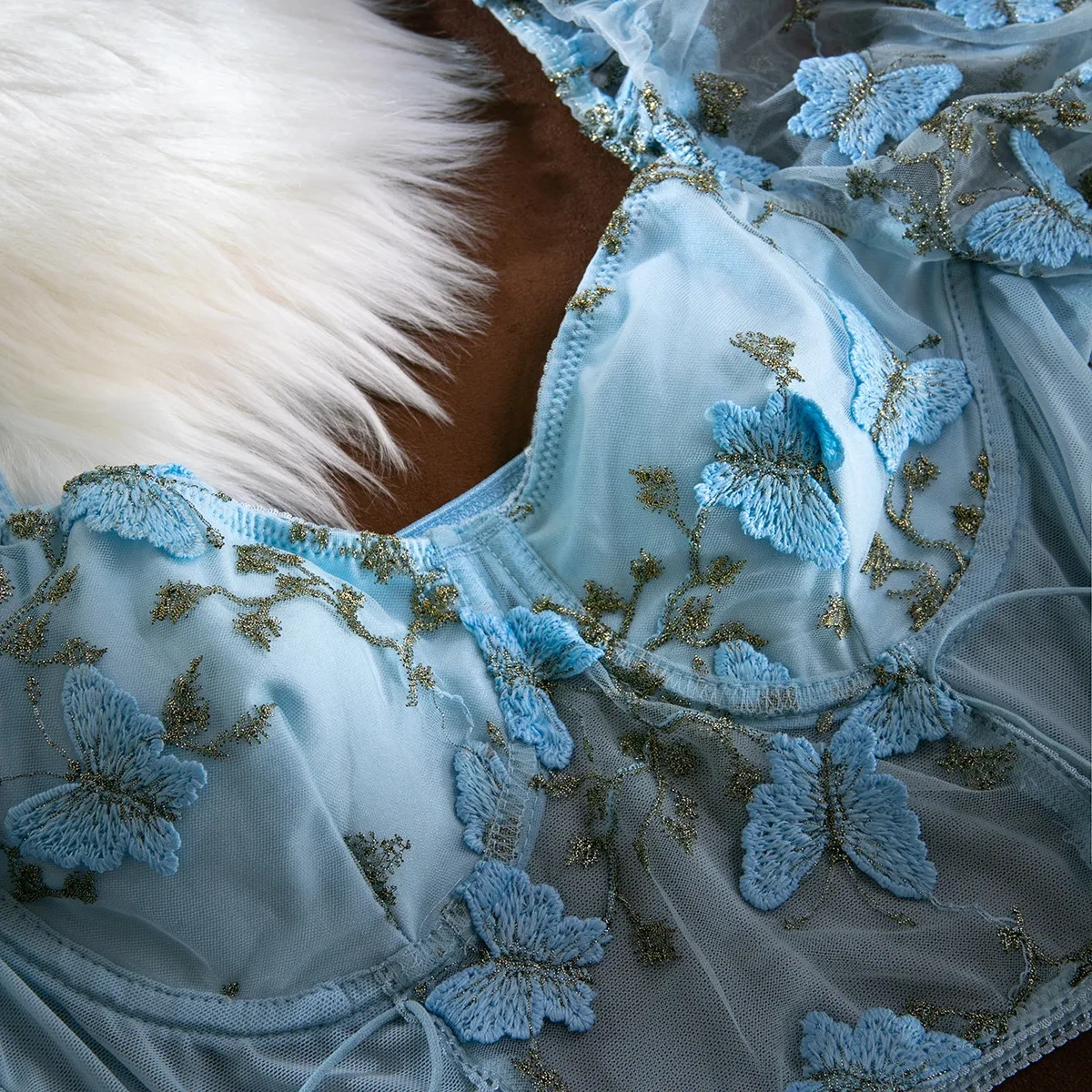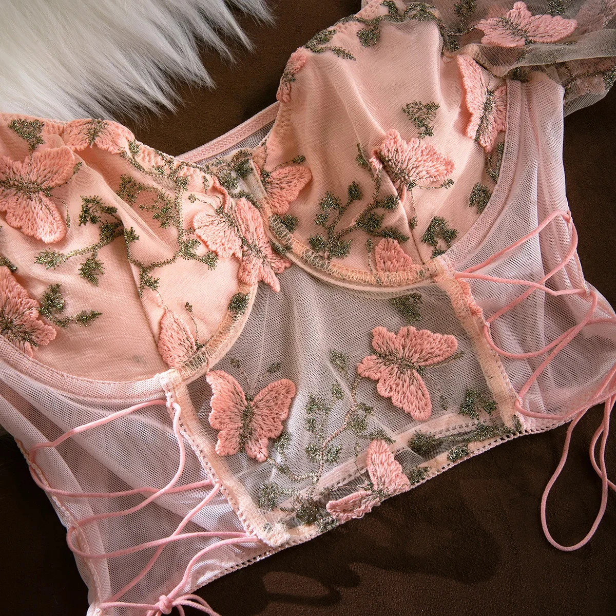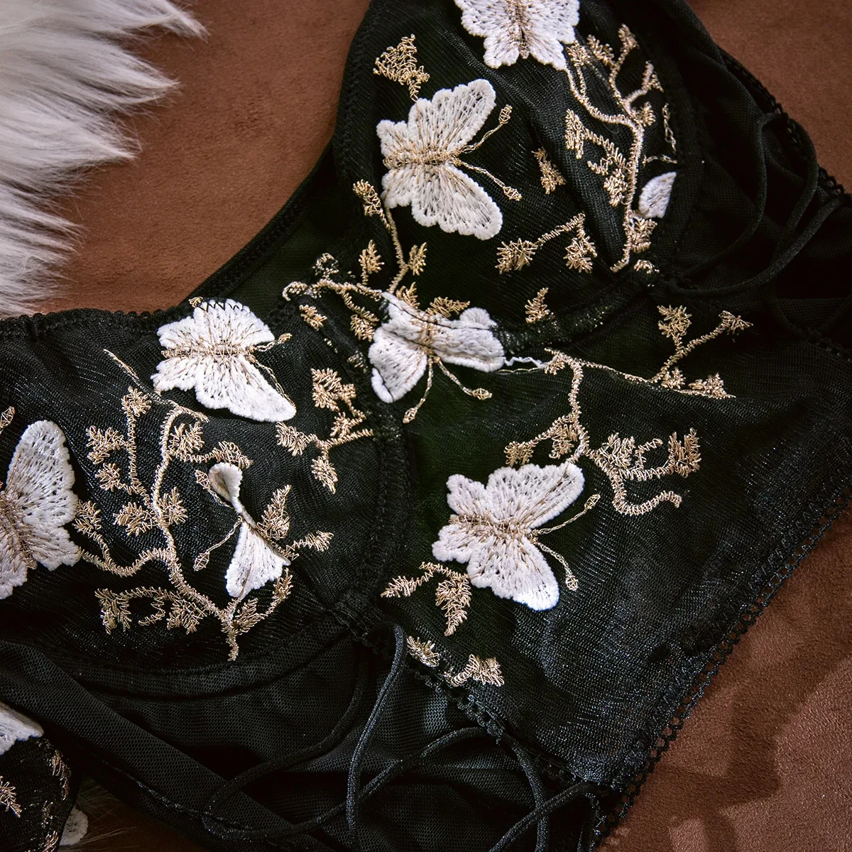 Yimunancy Floral Embroidery Crop Tops Women Puff Sleeve Ruched Backless Boho Tops