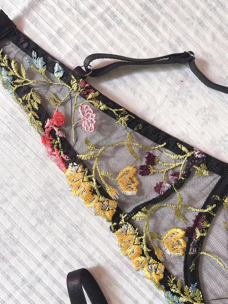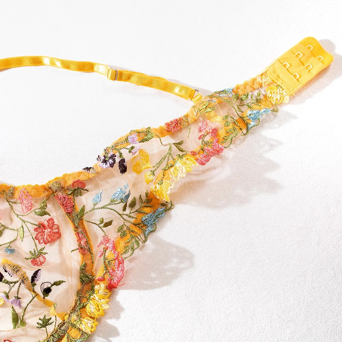 Yimunancy Floral Embroidery Lingerie Set Women Sheer 2-Piece Boho Bra + Panty Underwear Set Intimates