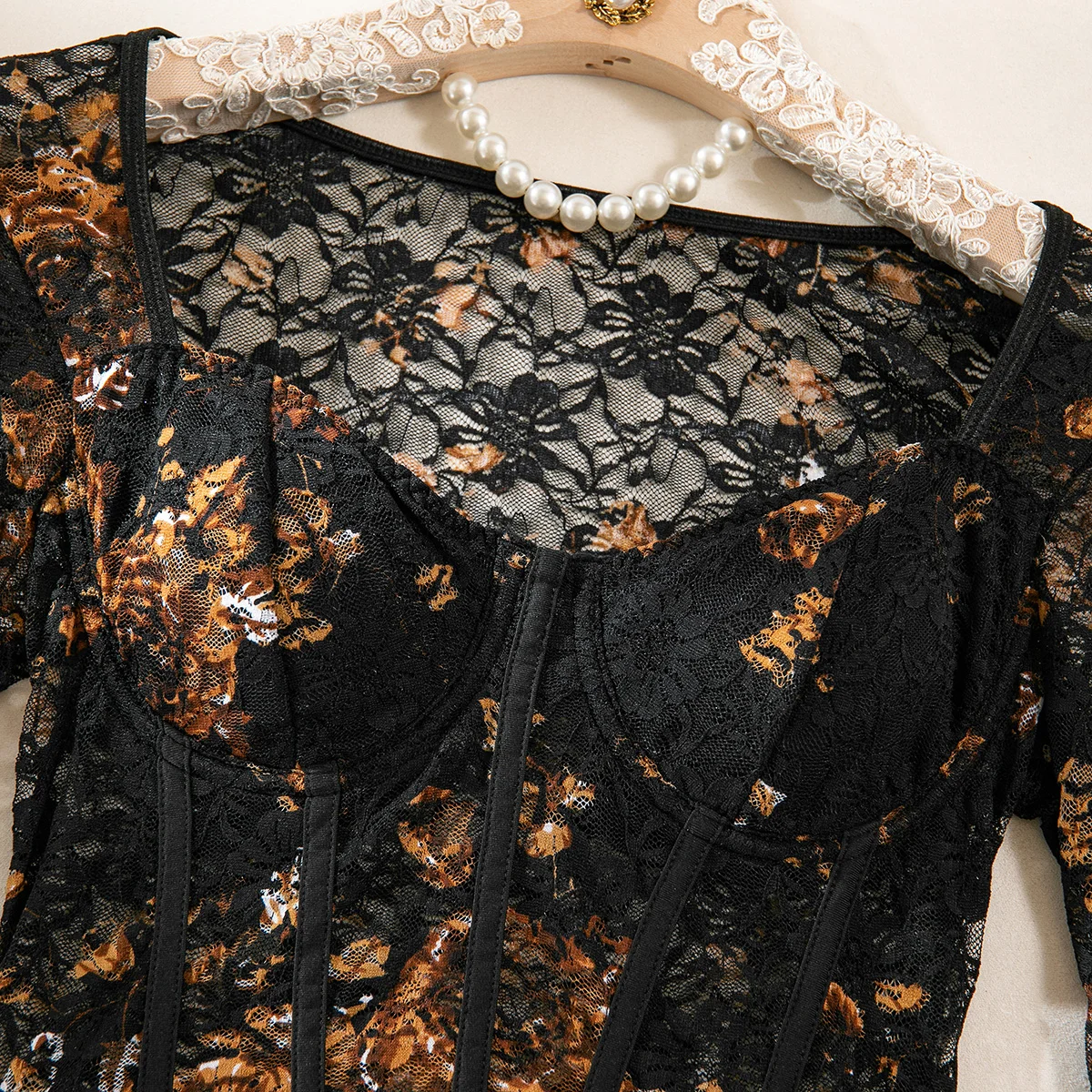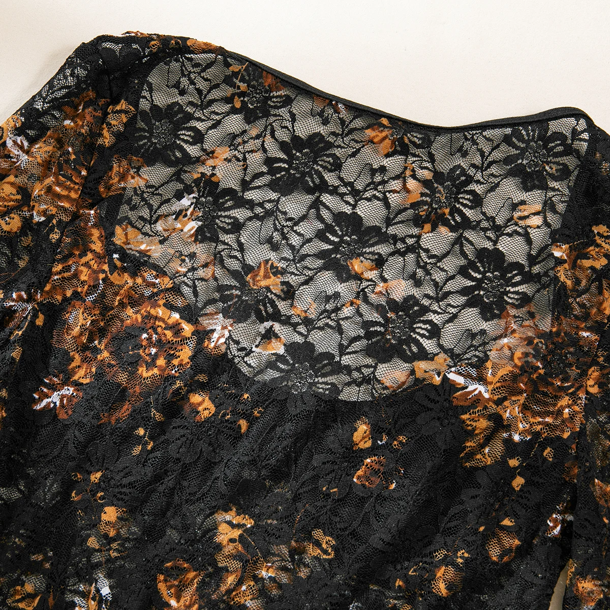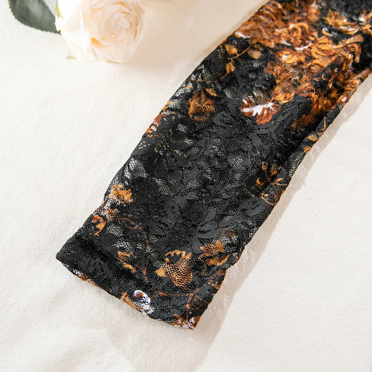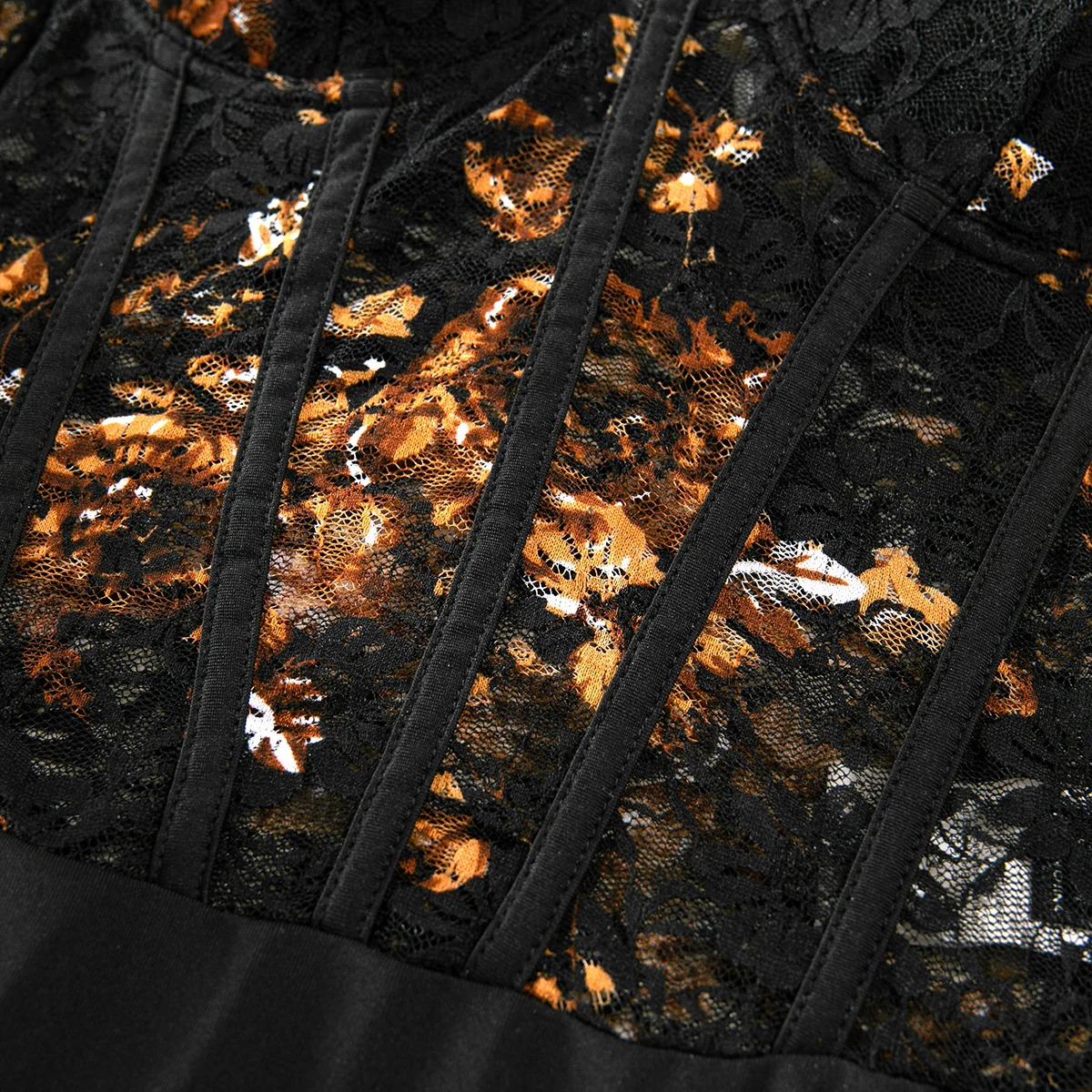 Yimunancy Floral Vintage Long Sleeve Bodysuit Women V Neck Lace Bodysuit Skinny Body Femme Clubwear