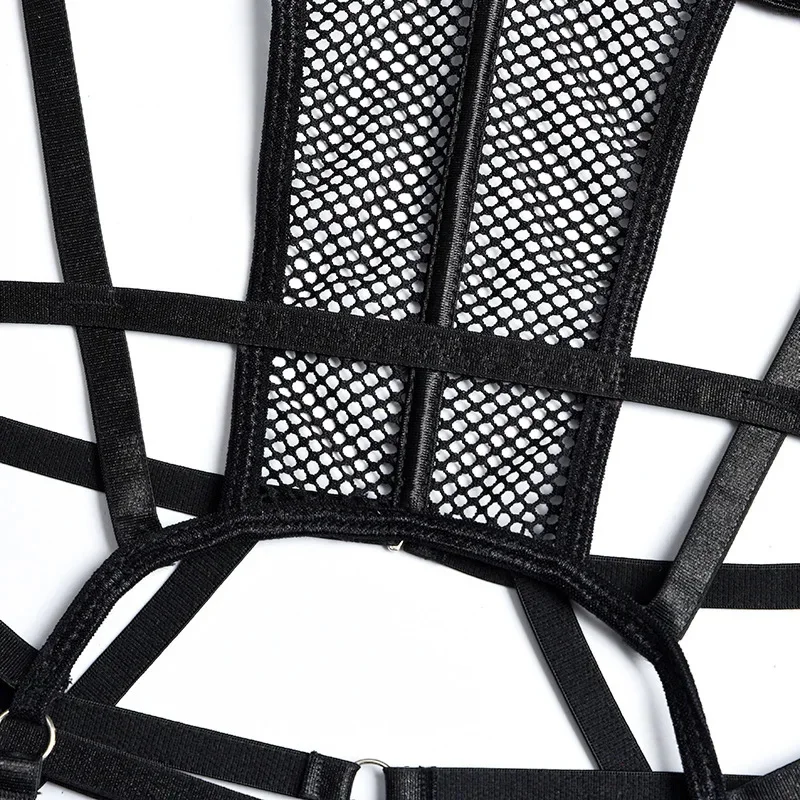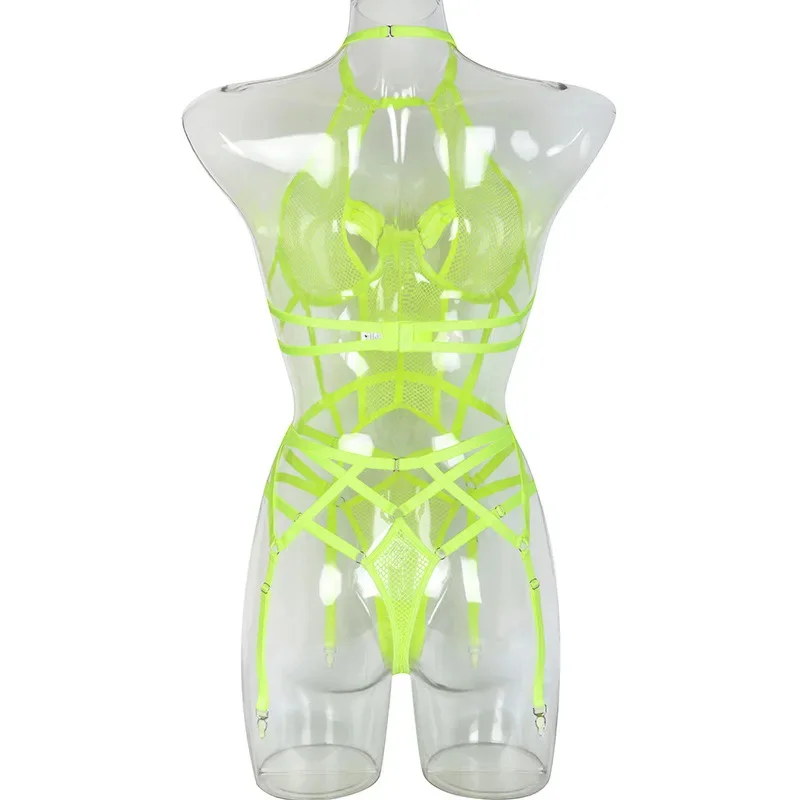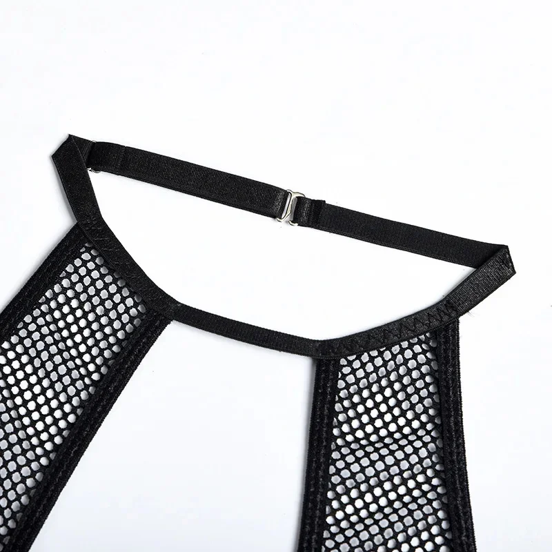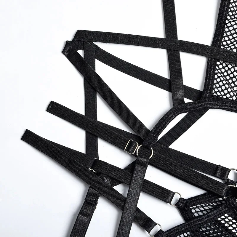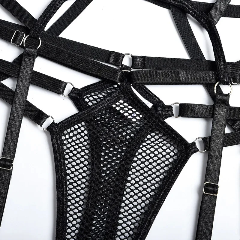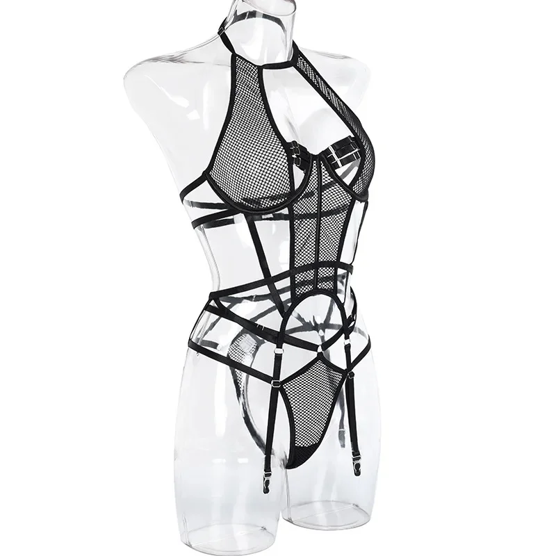 Yimunancy Gothic Halter Lingerie Set Women Cut Out Mesh Bra + Panty Underwear Set Bandage Erotic Kit