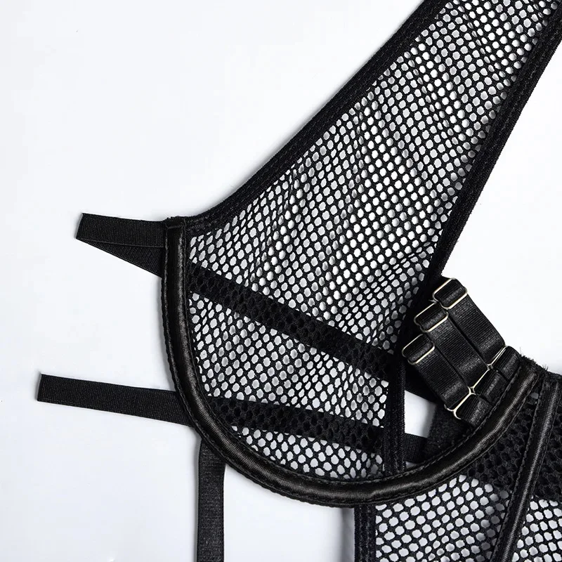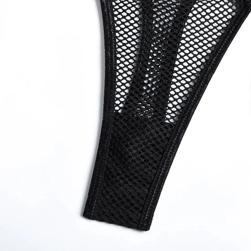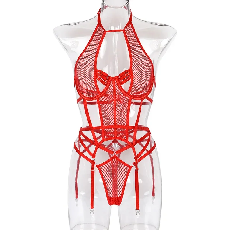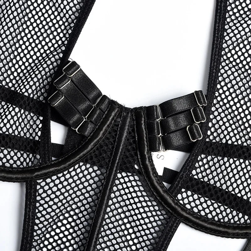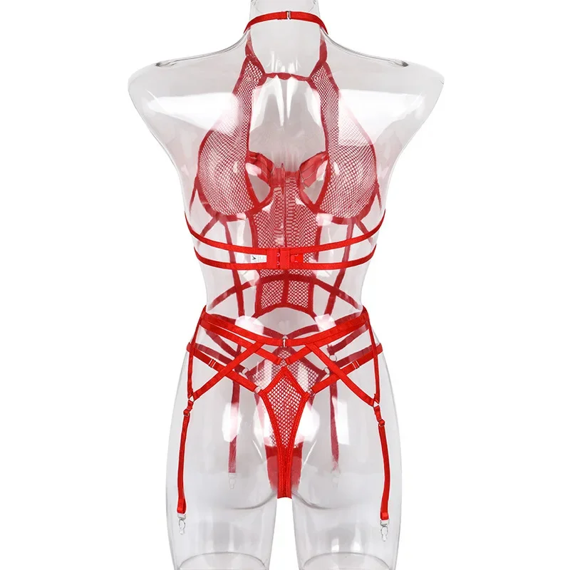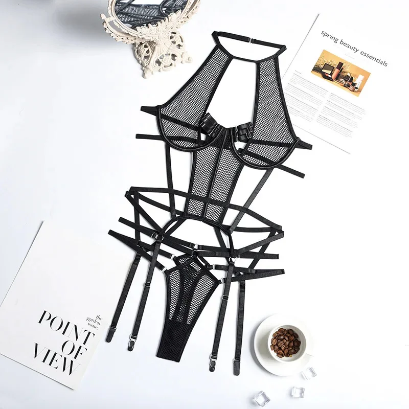 Yimunancy Gothic Halter Lingerie Set Women Cut Out Mesh Bra + Panty Underwear Set Bandage Erotic Kit