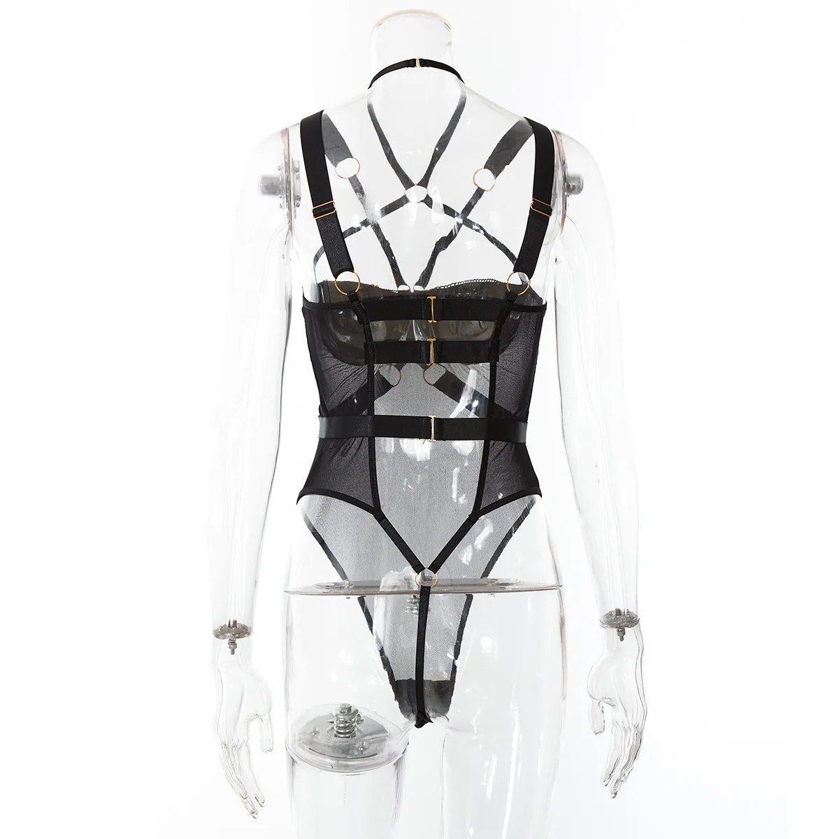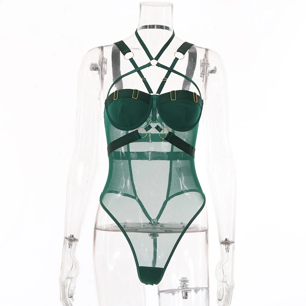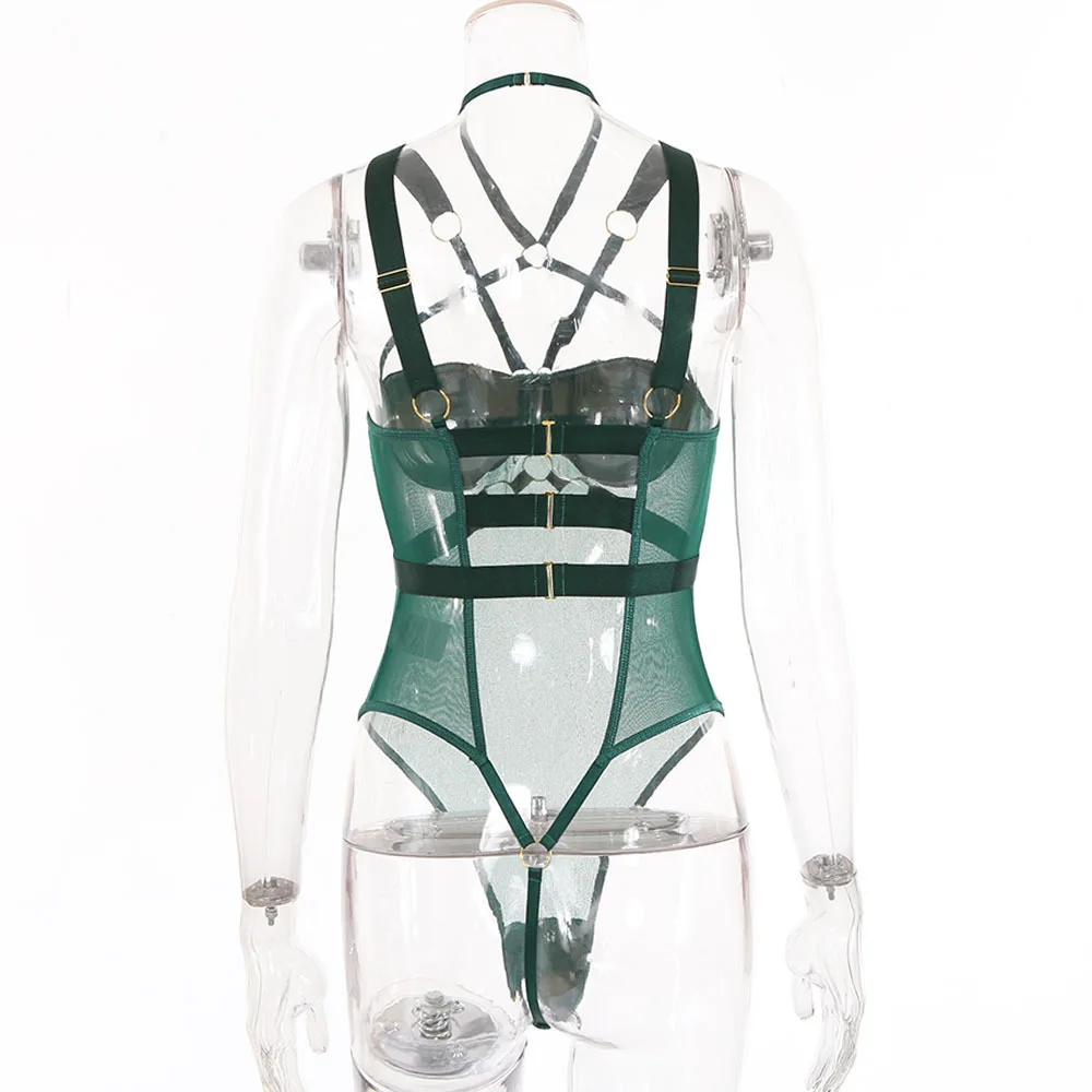 Yimunancy Gothic Halter Mesh Bodysuit Women Skinny Bodycorn Bandage Bodysit Sexy Teddies Body femme