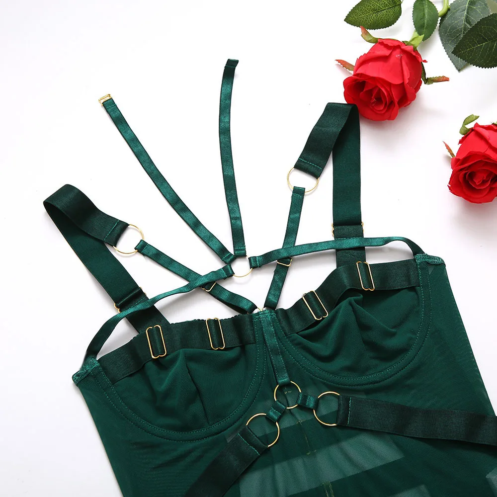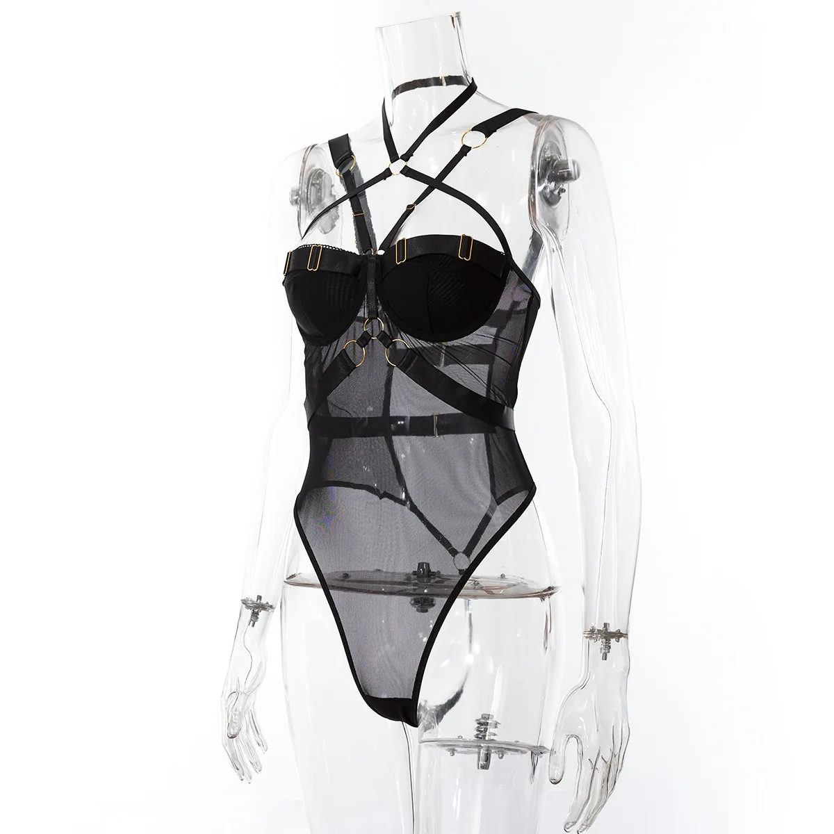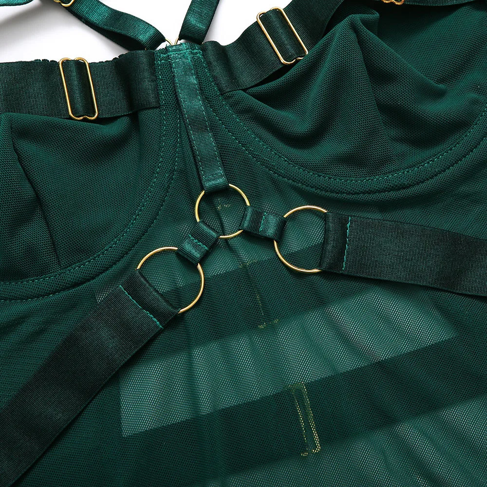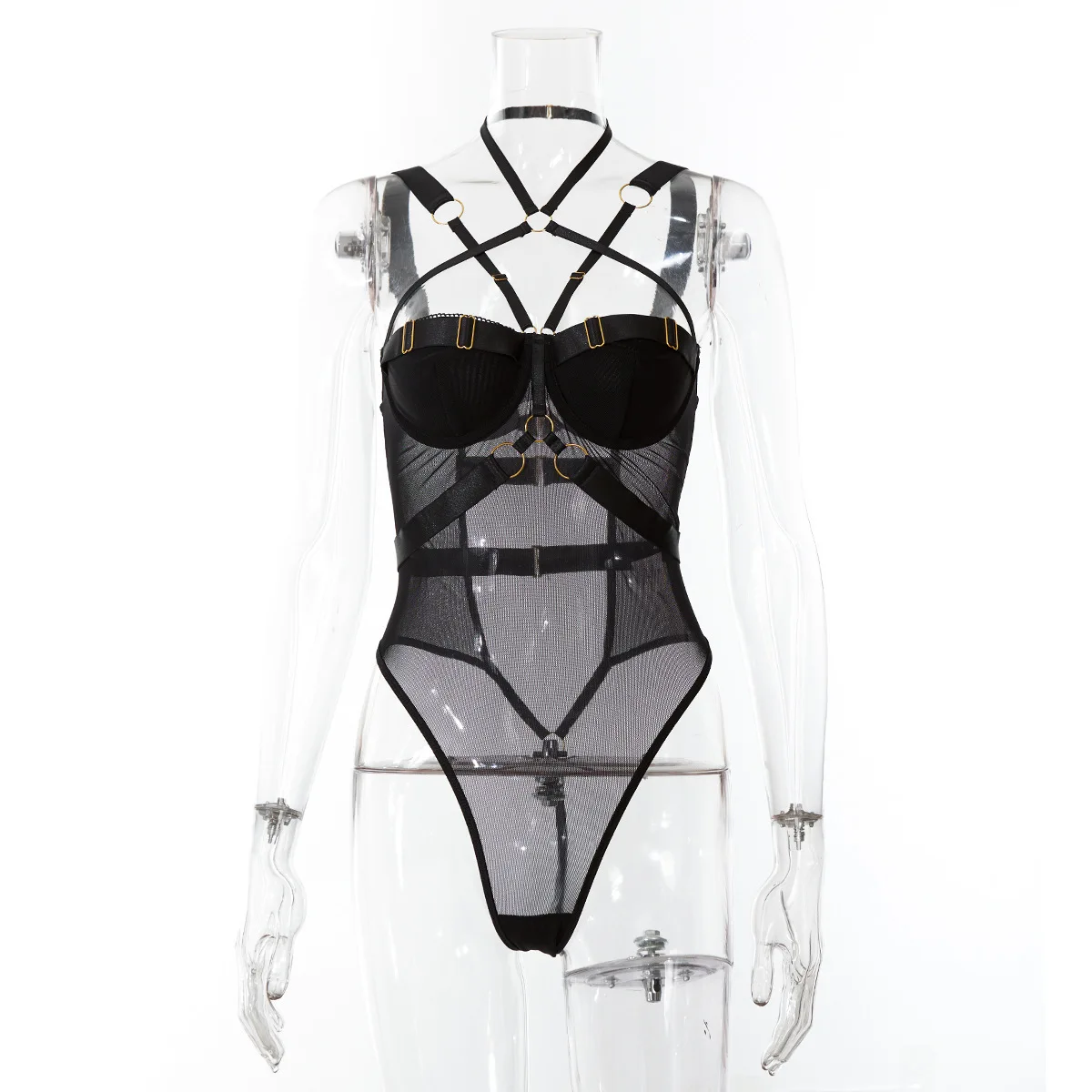 Yimunancy Gothic Halter Mesh Bodysuit Women Skinny Bodycorn Bandage Bodysit Sexy Teddies Body femme