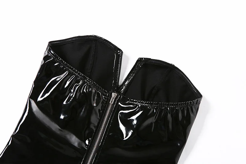 Yimunancy Gothic PU Leather Bodysuit Strapless Bodysuit Club Backless Sexy Body Femme