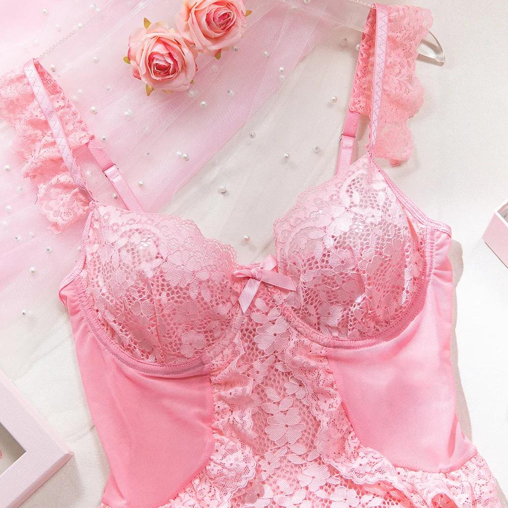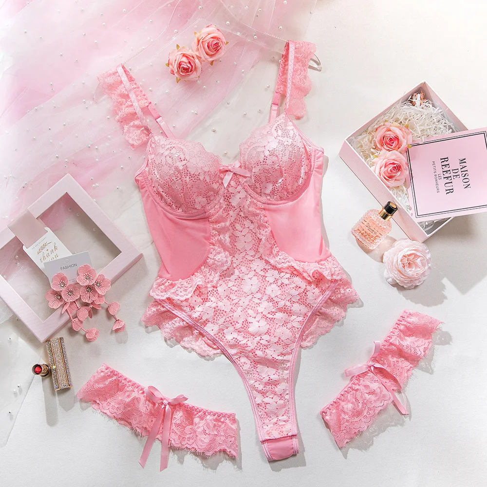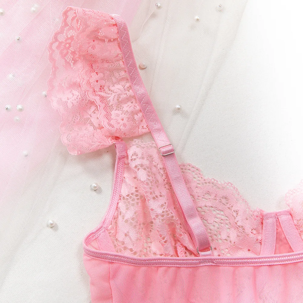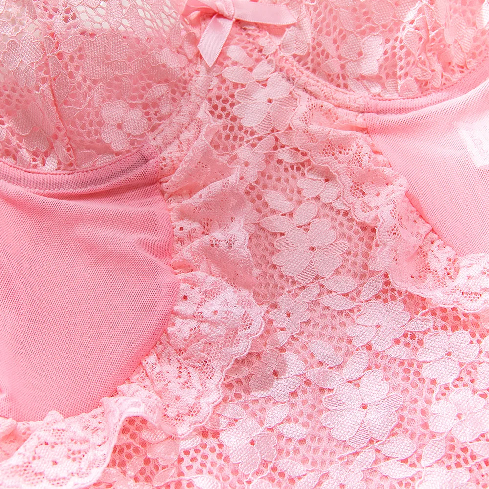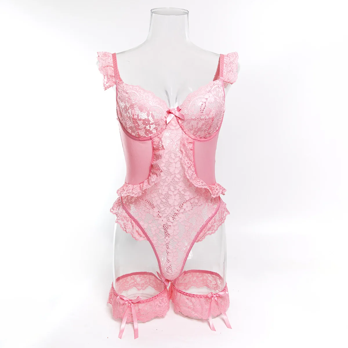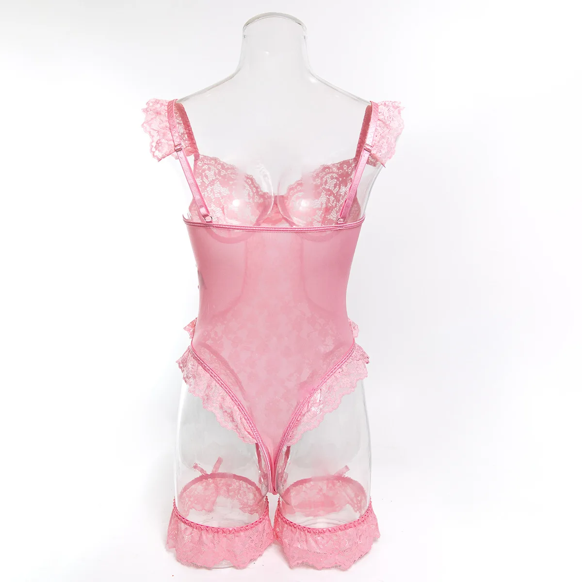 Yimunancy Lace Bodysuit Women 2-Piece Sensual Mesh Bodysuit Exotic Ruffle Backless Body Femme Sexy Intimates