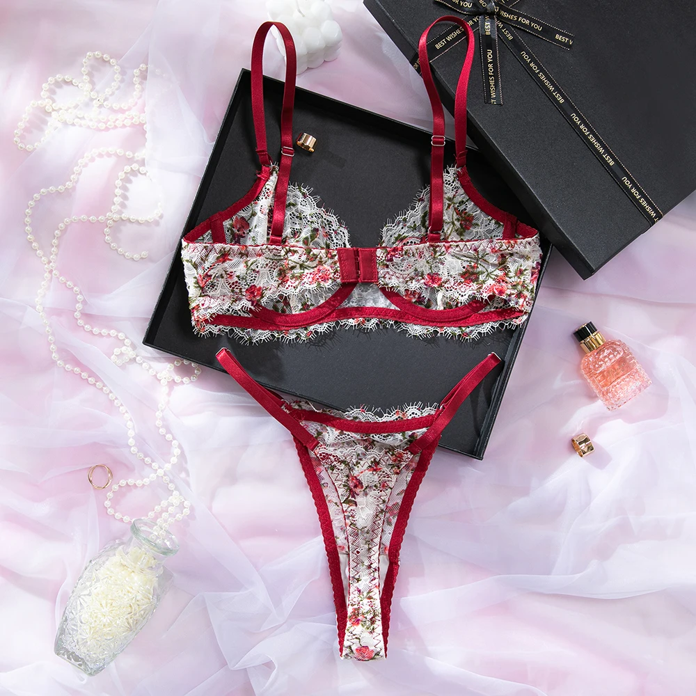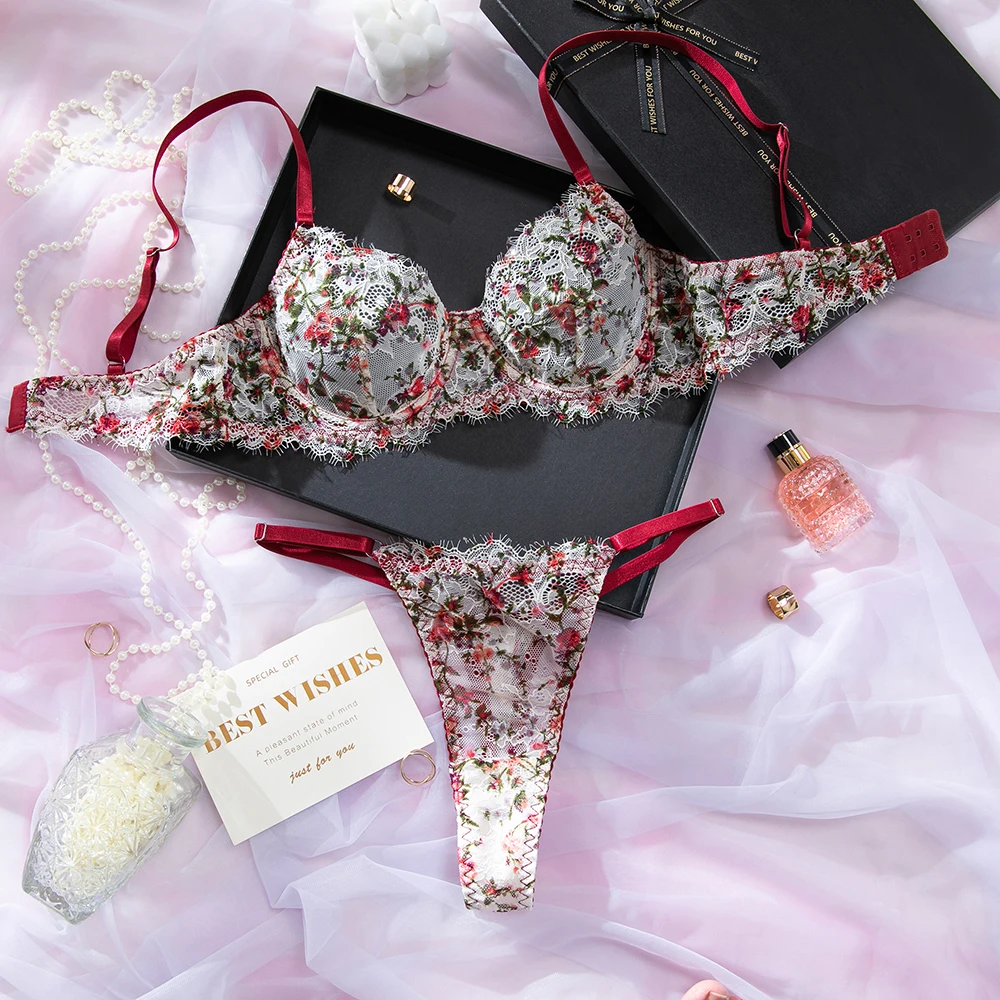 Yimunancy Lace Lingerie Set Women Multicolors Sexy Intimates Vintage Boho Underwear Set