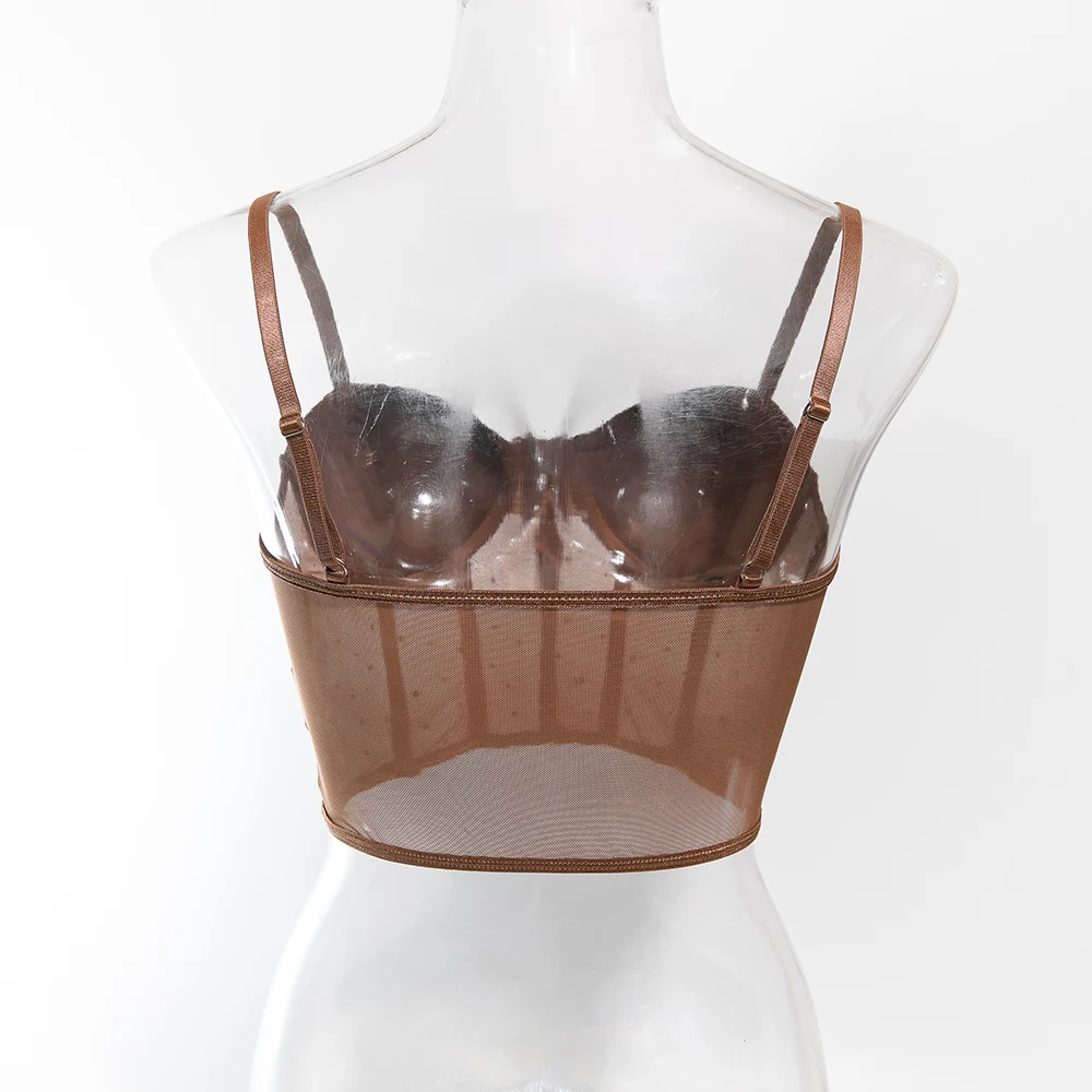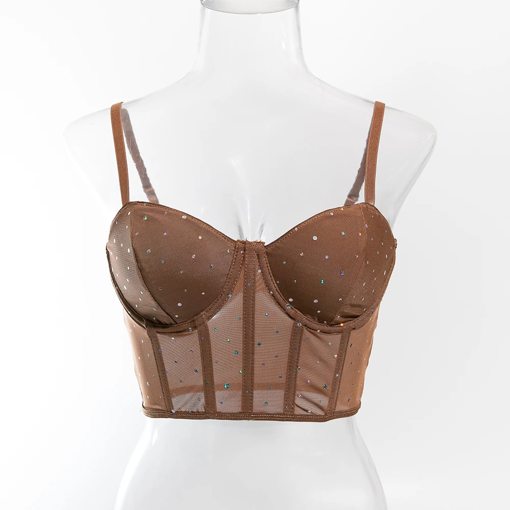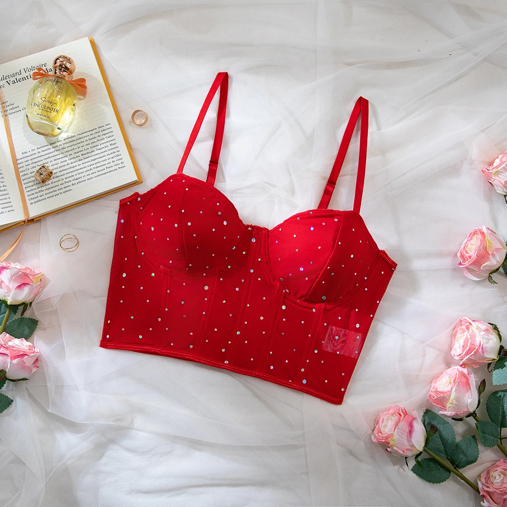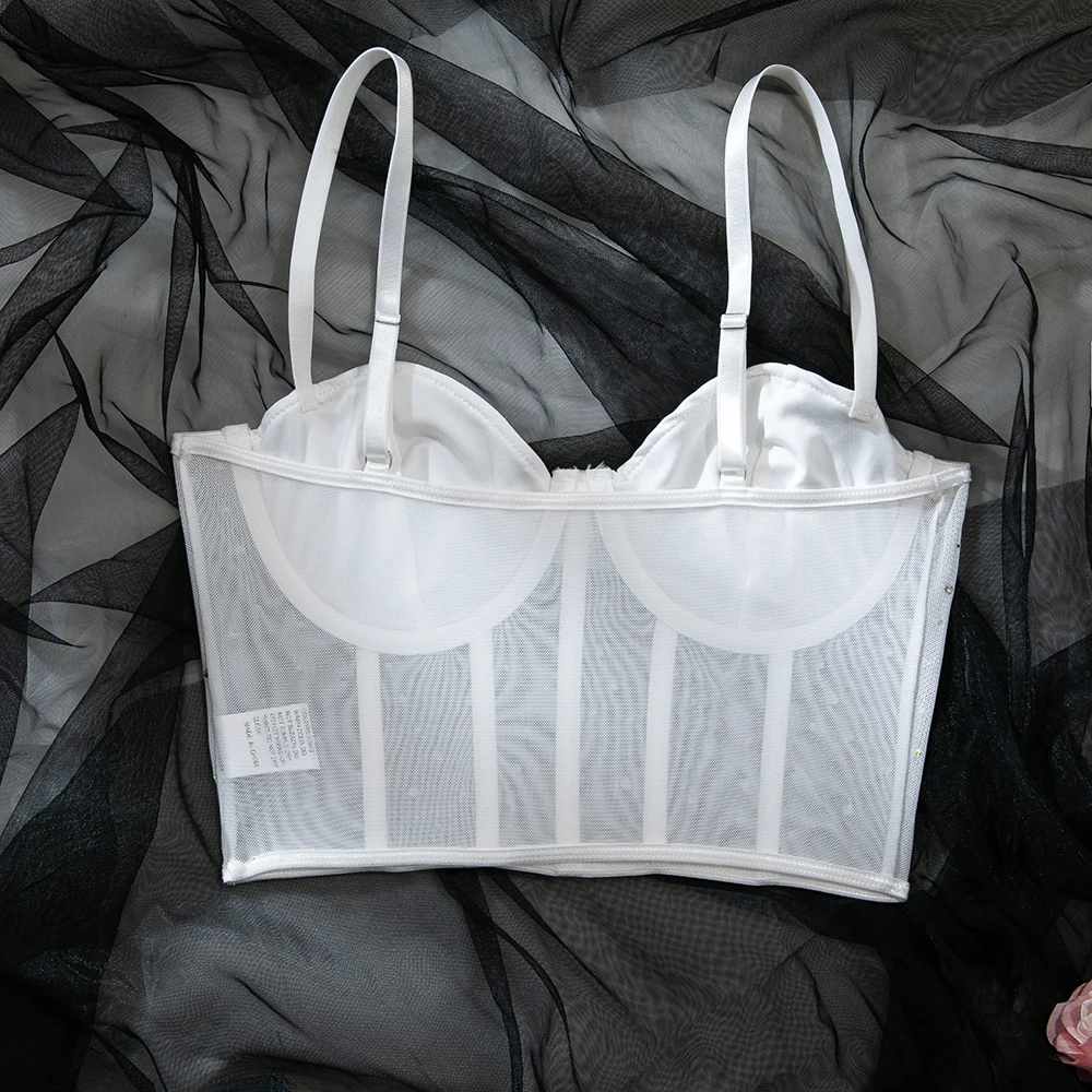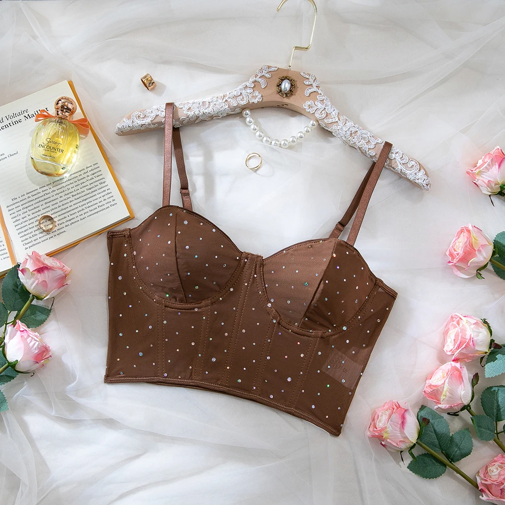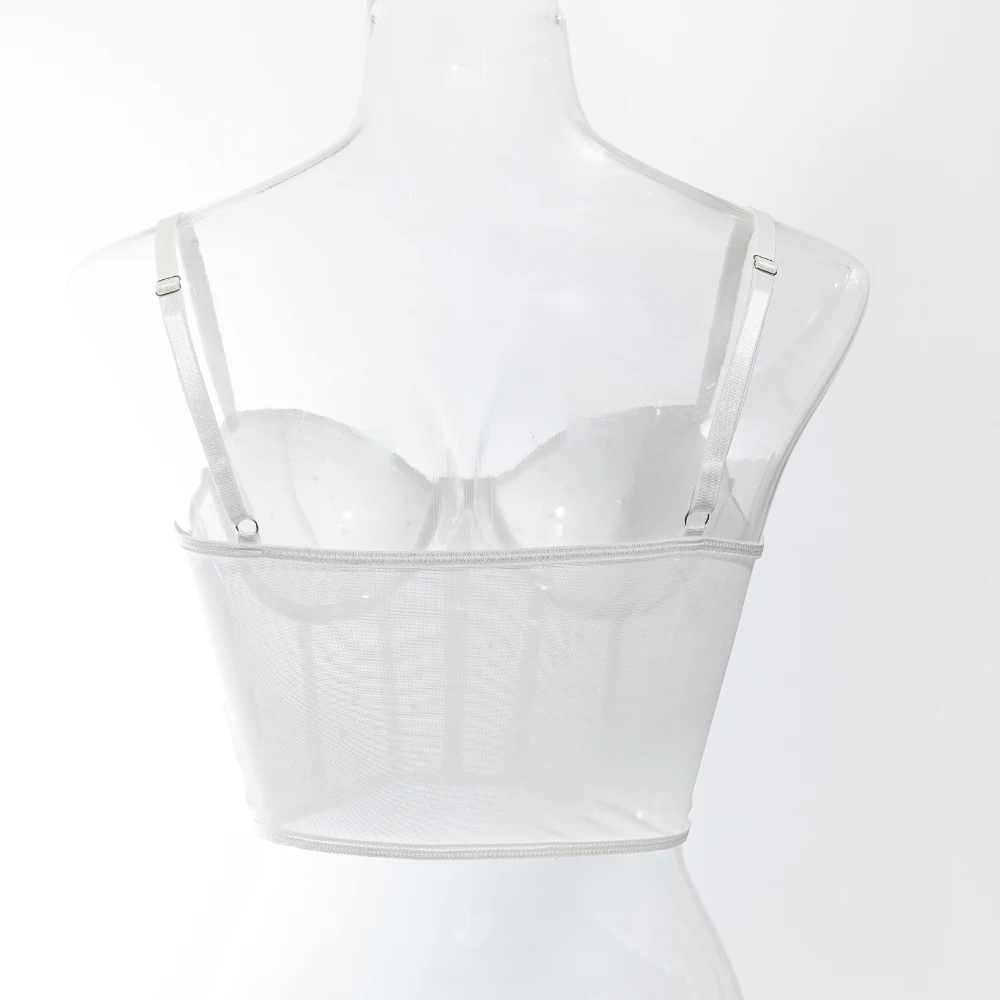 Yimunancy Rhinestone Camisole Women Cropped Top Backless Summer Sexy Mesh Top Blusas