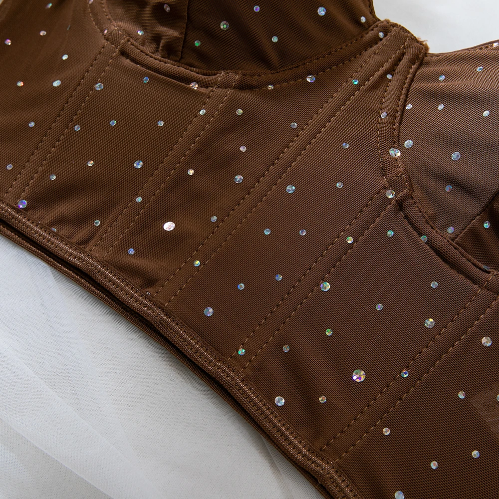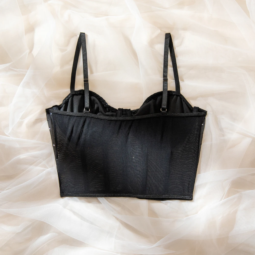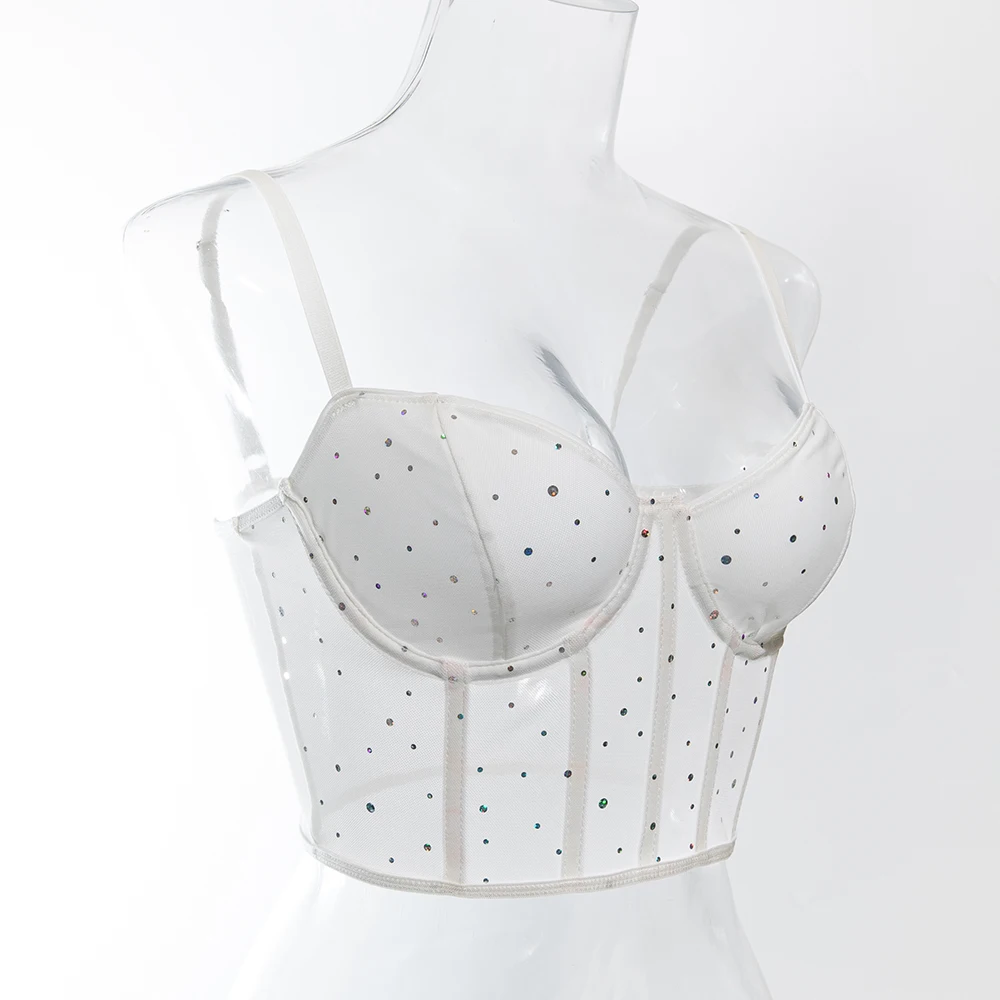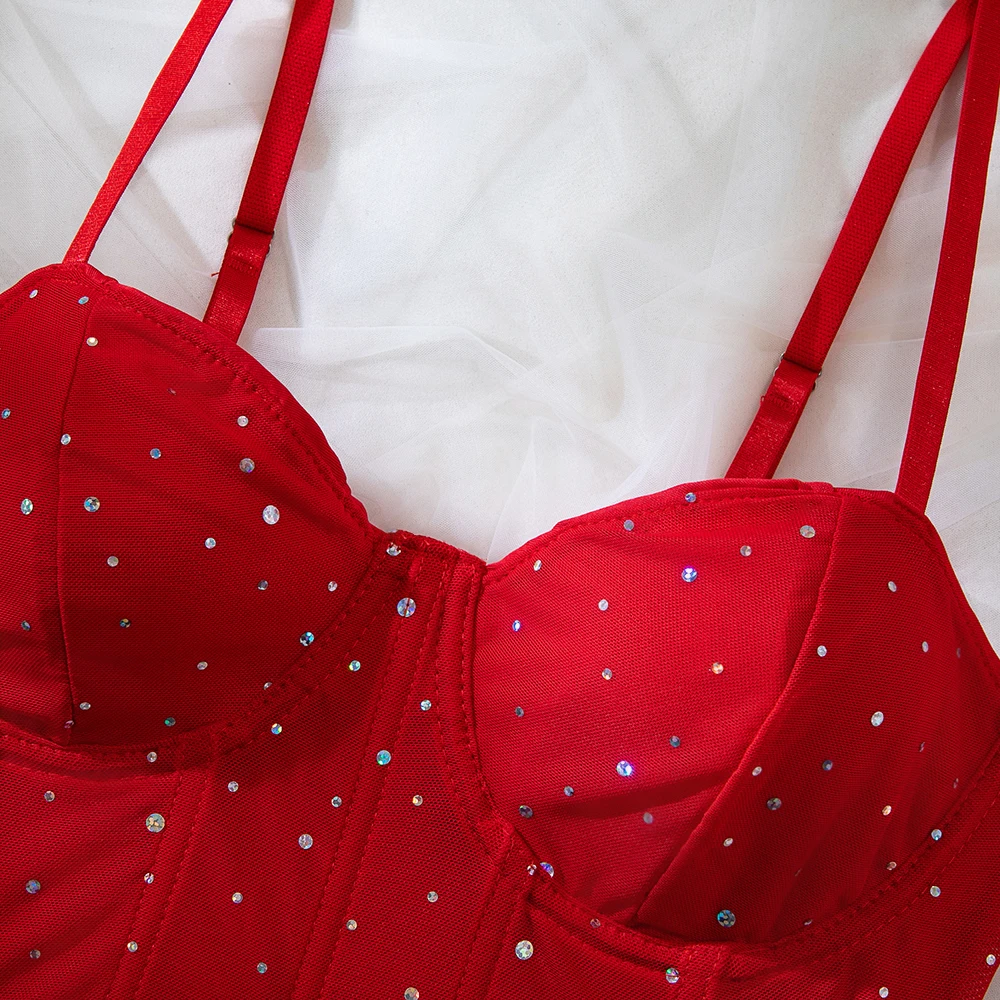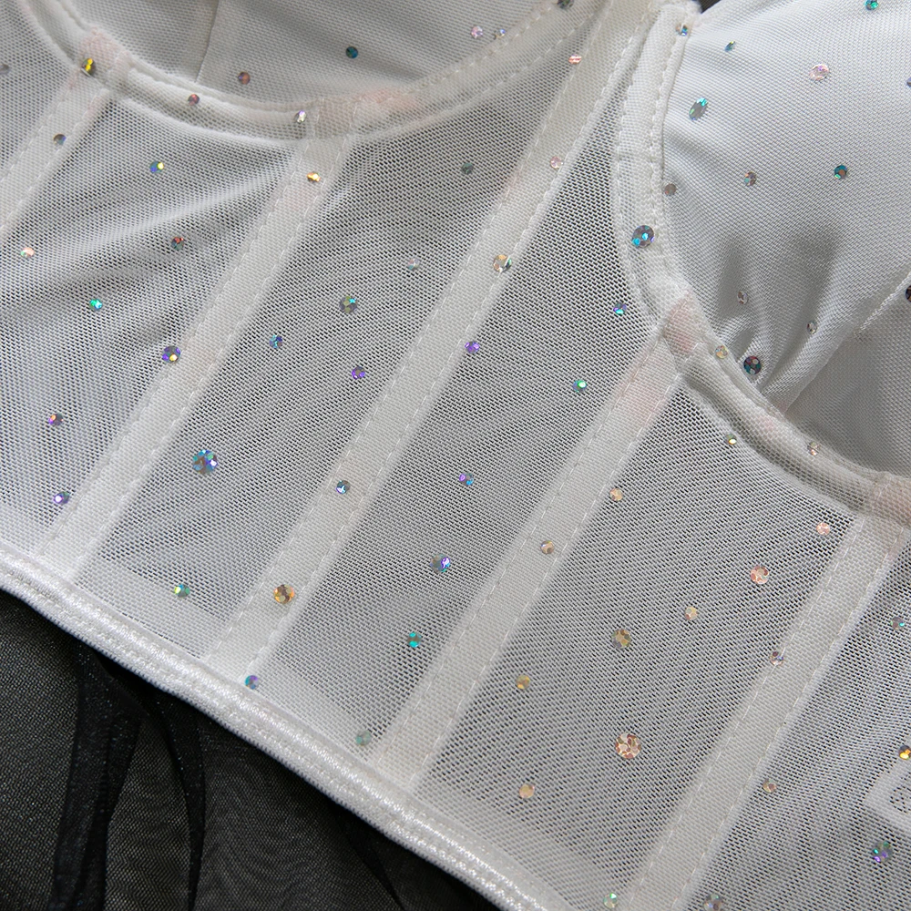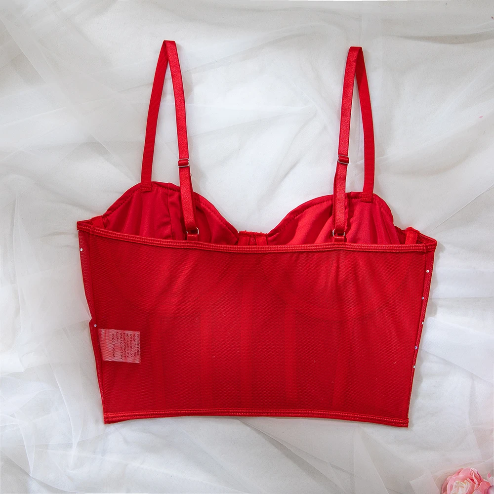 Yimunancy Rhinestone Camisole Women Cropped Top Backless Summer Sexy Mesh Top Blusas