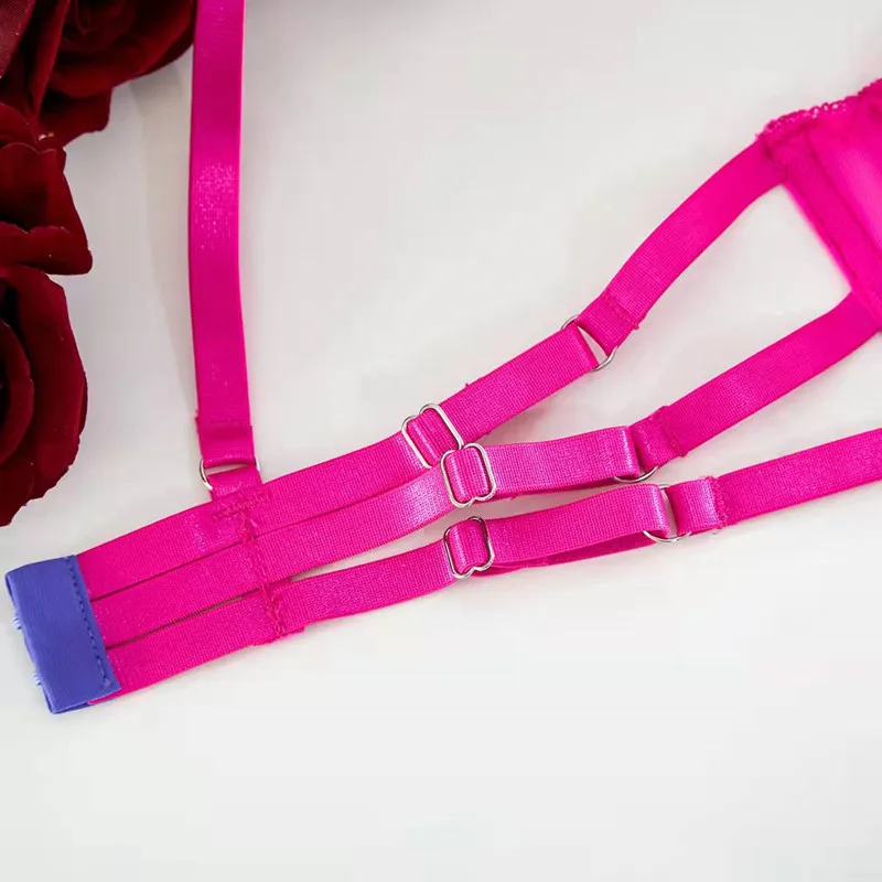 Yimunancy Sensual Lingerie Lace Delicate Underwear 4-Piece Sexy Underwear Exotic Sets Fancy Garter Brief Kits