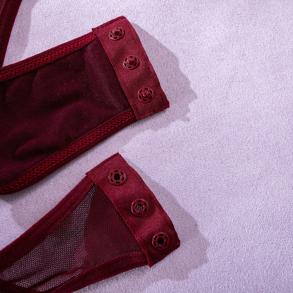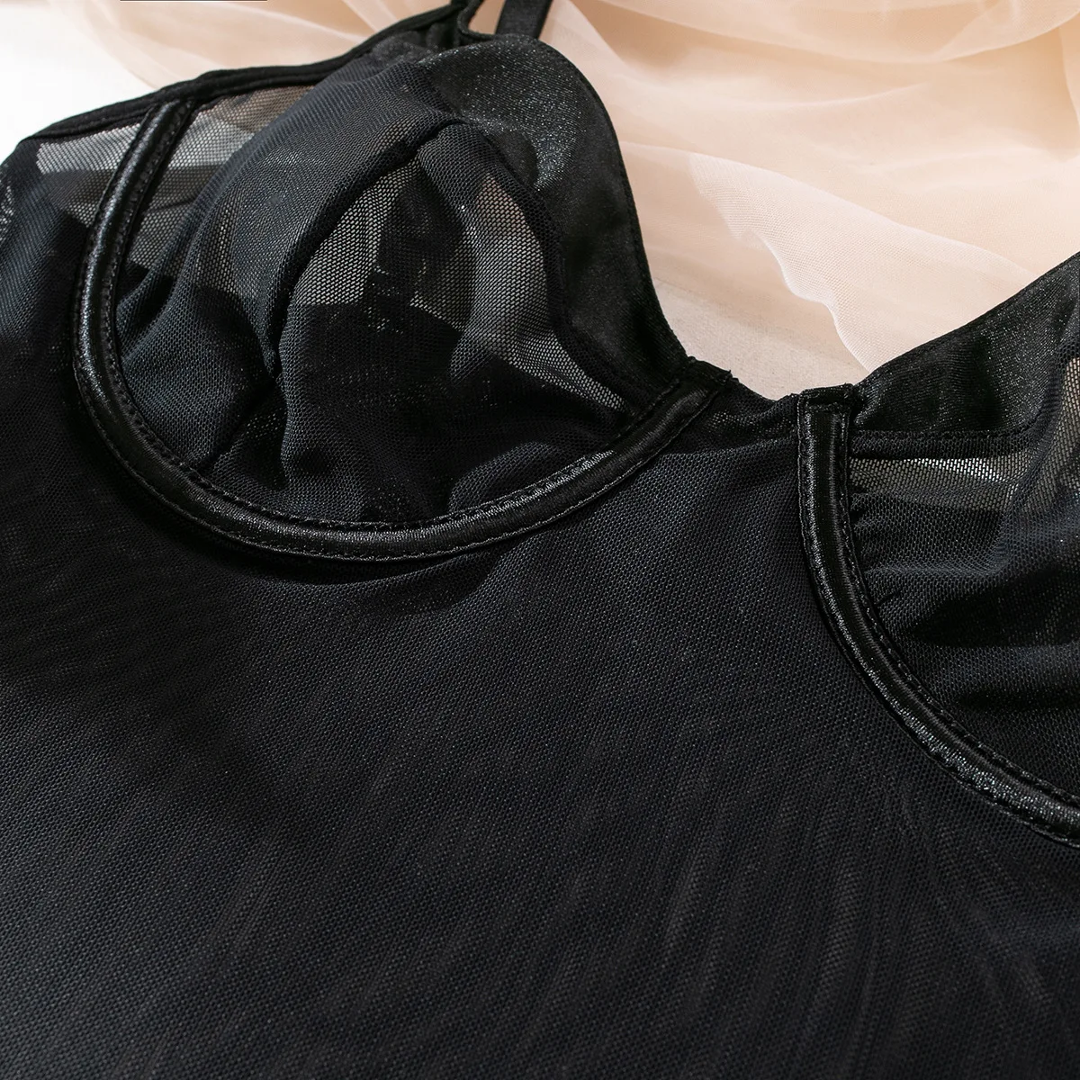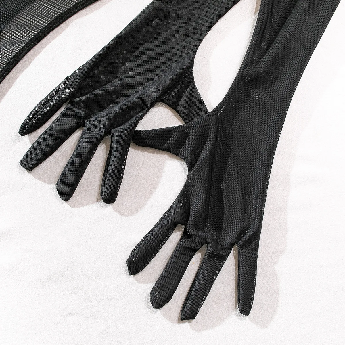 Yimunancy Sheer Mesh Bodysuit Women Patchwork High Cut Skinny Bodysuit Gloves Black Backless Club Body Femme