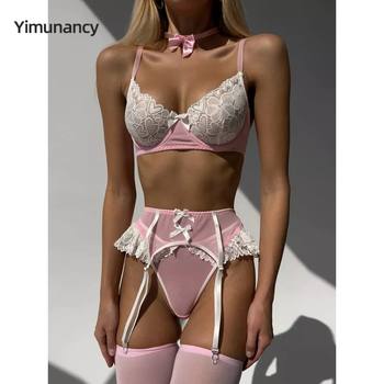 Yimunancy 3-Piece Lingerie Set Women Sexy Erotic Mesh Patchwork Bra + Brief Underwear Set Bandage Garter Kit