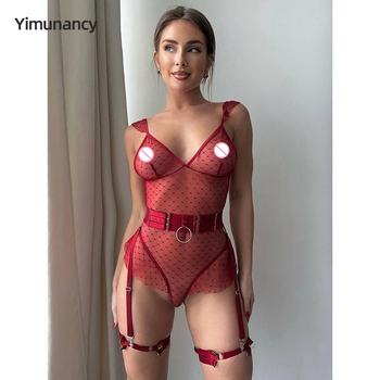 Yimunancy Dot Mesh Bodysuit Women Transparent Sleeveless Sexy Bodysuit 2-Piece Erotic Body Femme