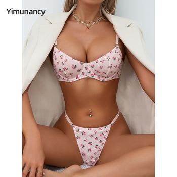 Yimunancy Floral Print Boho Intimates Women 2-Piece Bra + Brief Underwear Set Sweet Lingerie Set