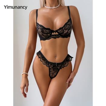 Yimunancy Transparent Sexy Lingerie Set Women Embroidery 2-Piece Sensual Bra+ Brief Underwear Set Flroal Erotic Intimates