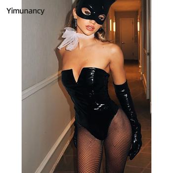 Yimunancy PU Leather Sexy Bodysuit Women Strapless Bodycorn Bodysuit Halloween Body Femme