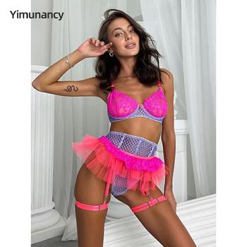Yimunancy Mesh Lingerie Set Women Ball Transparent Ruffle Bra Underwear Sexy Erotic Set