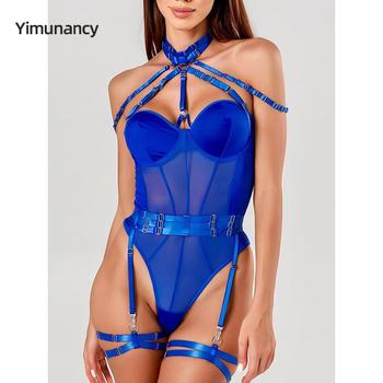 Yimunancy Cut Out Lingerie Set Women Backless 2-Piece Mesh Sensual Transparent Erotic Set