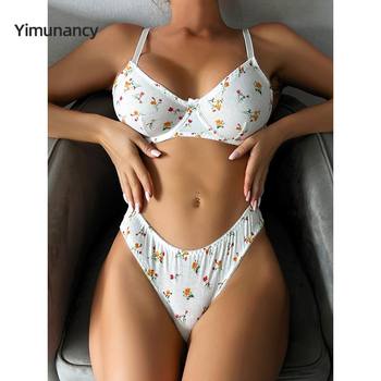 Yimunancy Boho Bra + Panty Underwear Set Women 2-Piece Everyday White Flroal Intimates Sexy Lingerie Set
