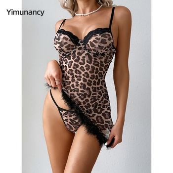 Yimunancy Leopard Print Bodycorn Dress Women 2-Piece Faux Feather Mesh Sexy Night Dress